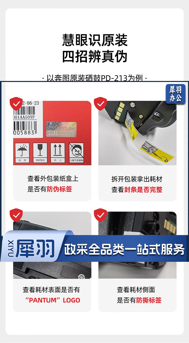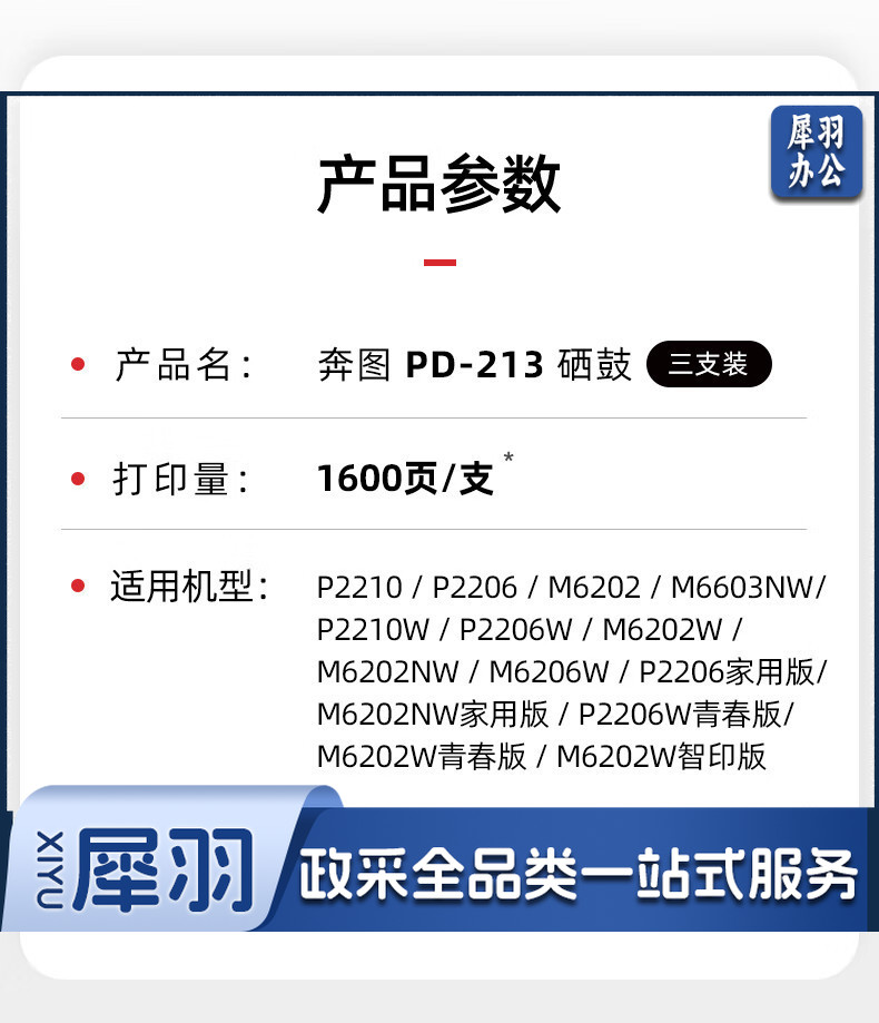 奔图(PANTUM)PD-213原装硒鼓3支装适用M6202W青春版M6202W/NW墨盒P2210W粉盒P2206W碳粉M6603NW M6206W打印机