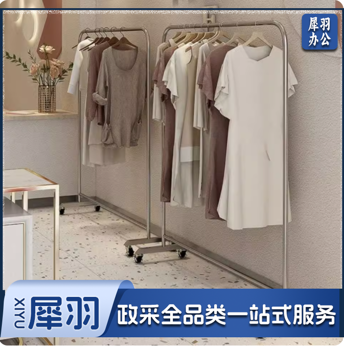 不锈钢服装展示架落地衣架带移动轮 长*高120cm*165cm