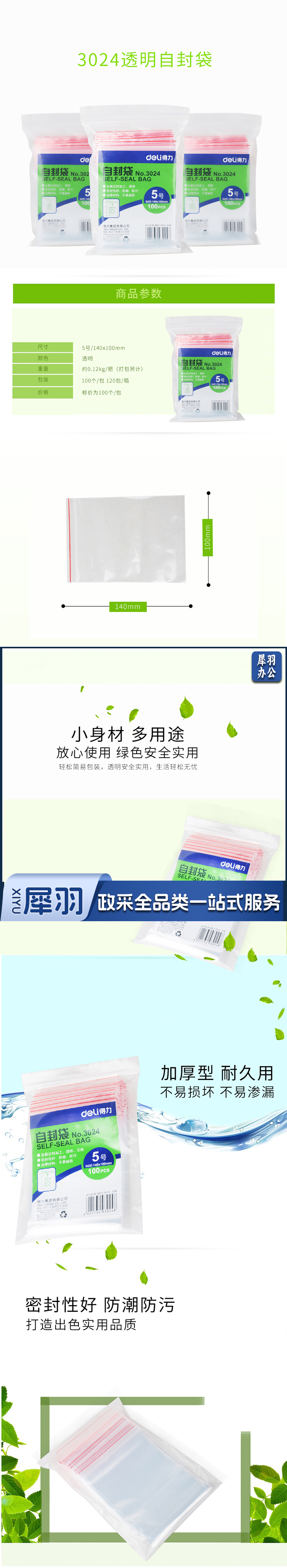 得力/deli 3024 -5号 自封袋 100个/包(单位:包) 透明