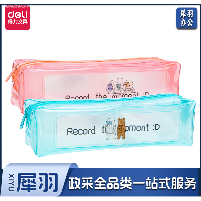 得力67145粉享季透明多用途笔袋(混)颜色备注