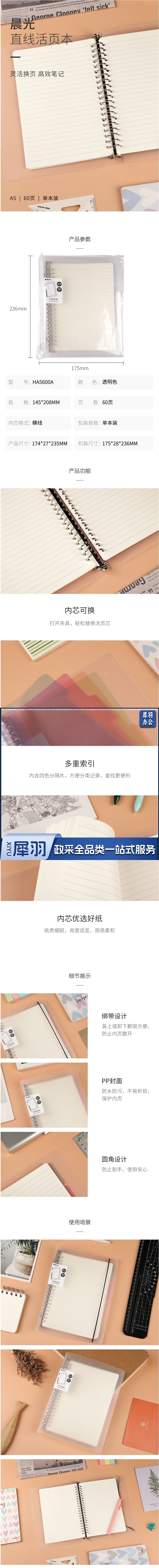 晨光(M&G)文具A5/60页横线活页本活力夹 单本装 HA5600A