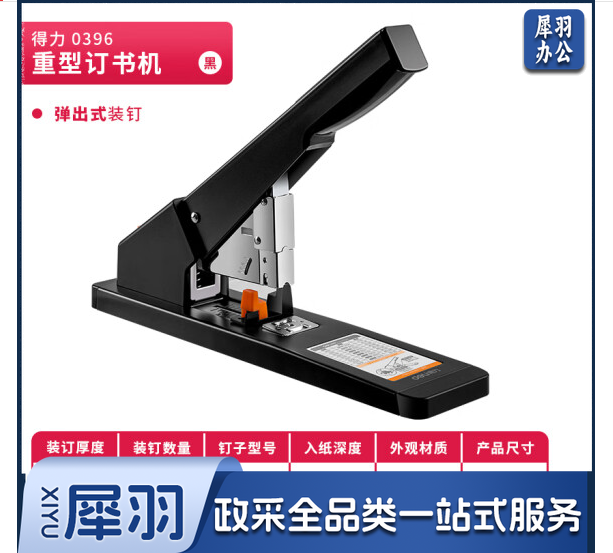 得力(deli)0396 210页工业用重型订书机 订书器 适配23/6~23/23订书钉 黑色