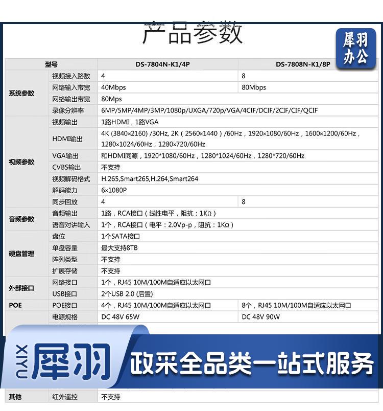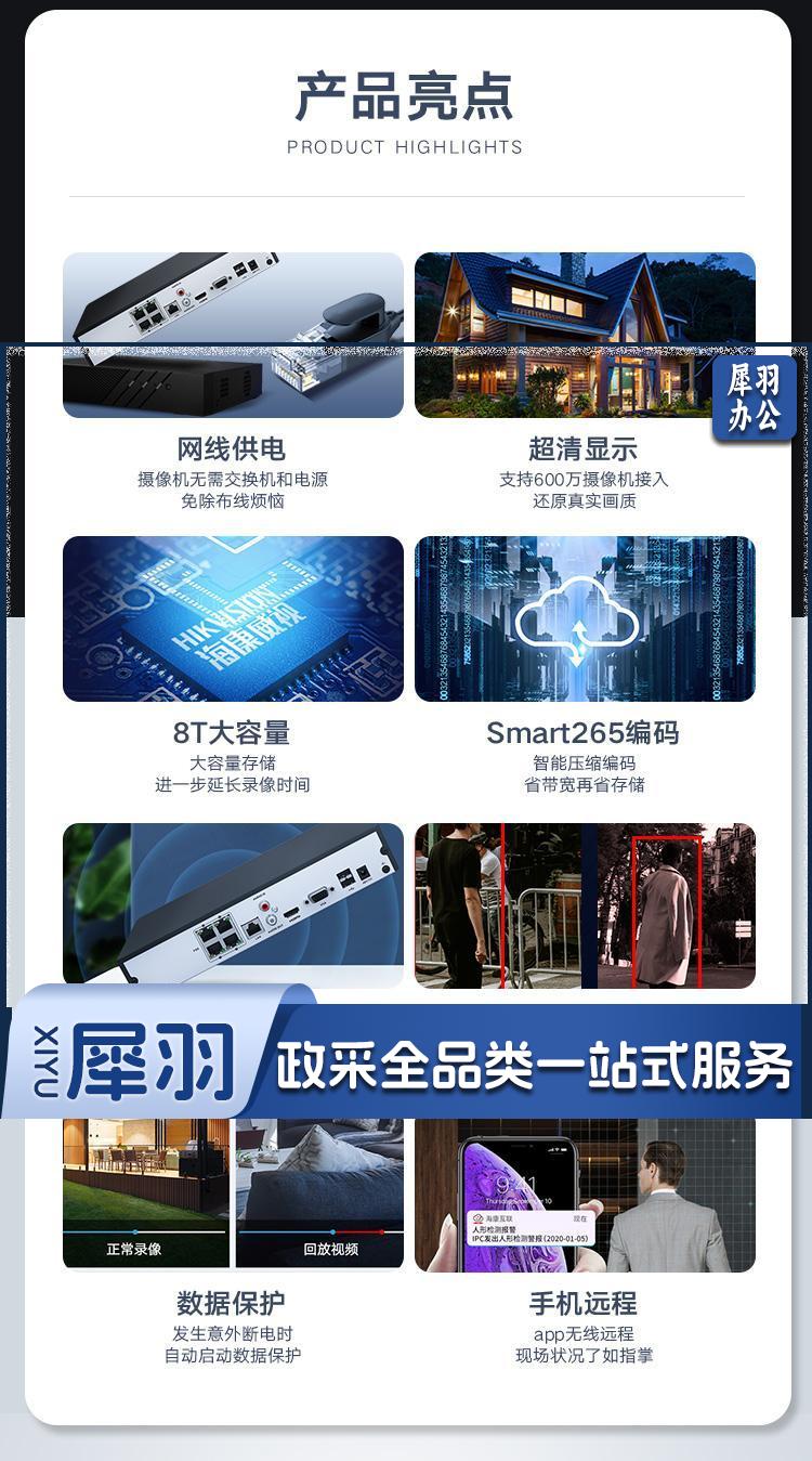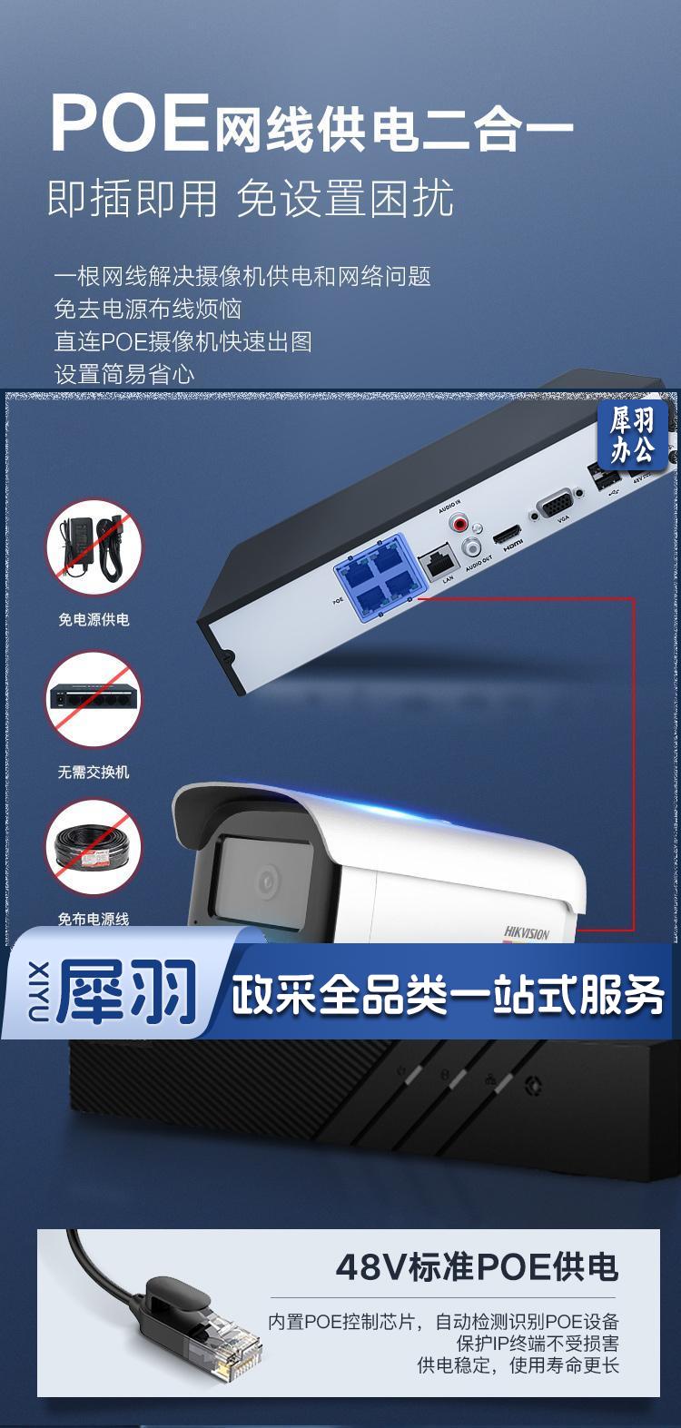 海康威视网络硬盘录像机监控4路POE网线供电NVR