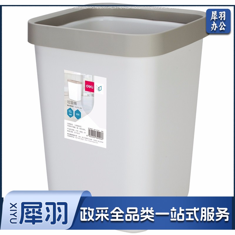 得力18820垃圾桶(浅灰)10l方形敞口 1只 厨房办公室家用大号创意垃圾箱无盖塑料方形带压圈垃圾桶