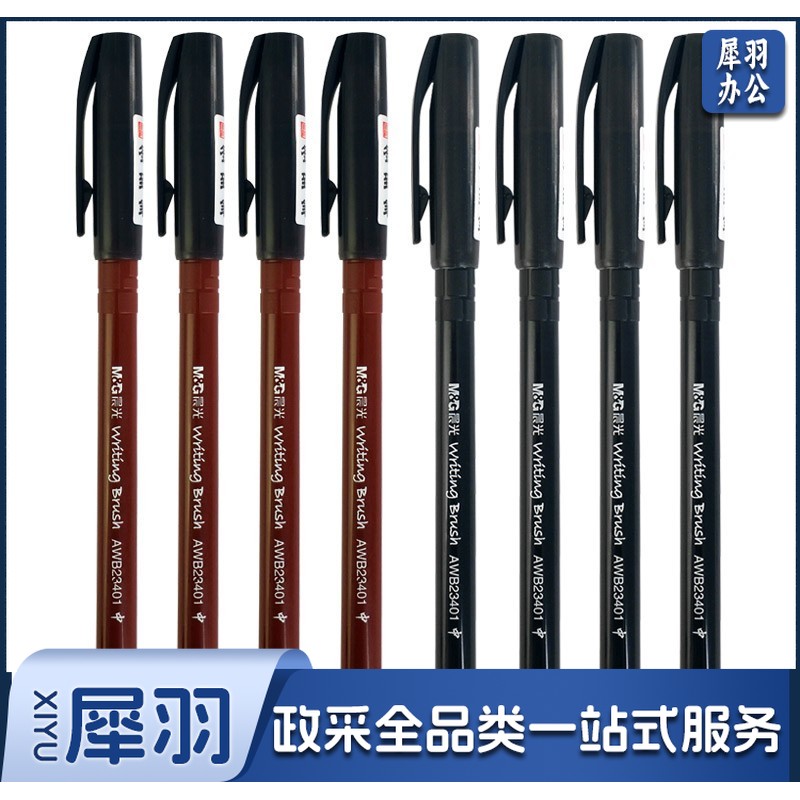 晨光(M&G)文具经典会议签到笔秀丽笔办公签字笔水笔记号笔纤维软毛黑色 12支装 笔杆颜色随机 AWB23401