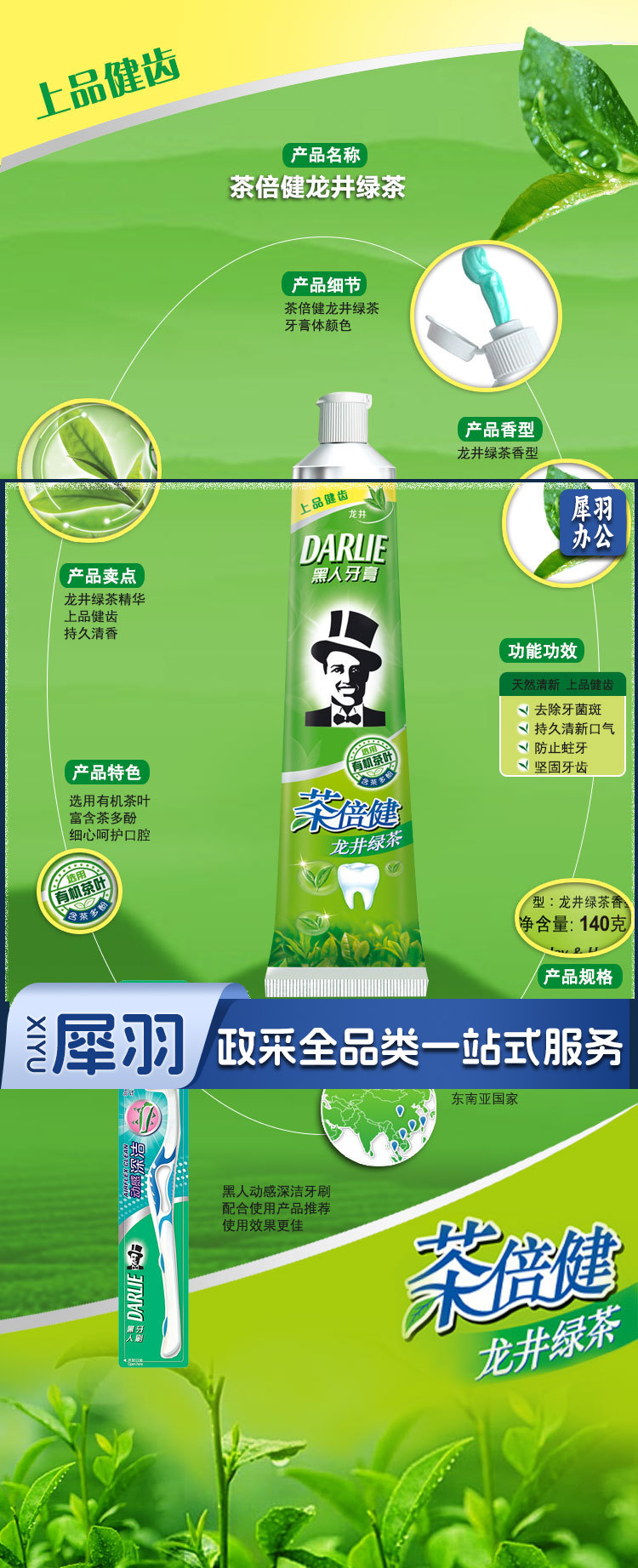 黑人 茶倍健牙膏90g 清新口气防蛀健齿(杭菊龙井)