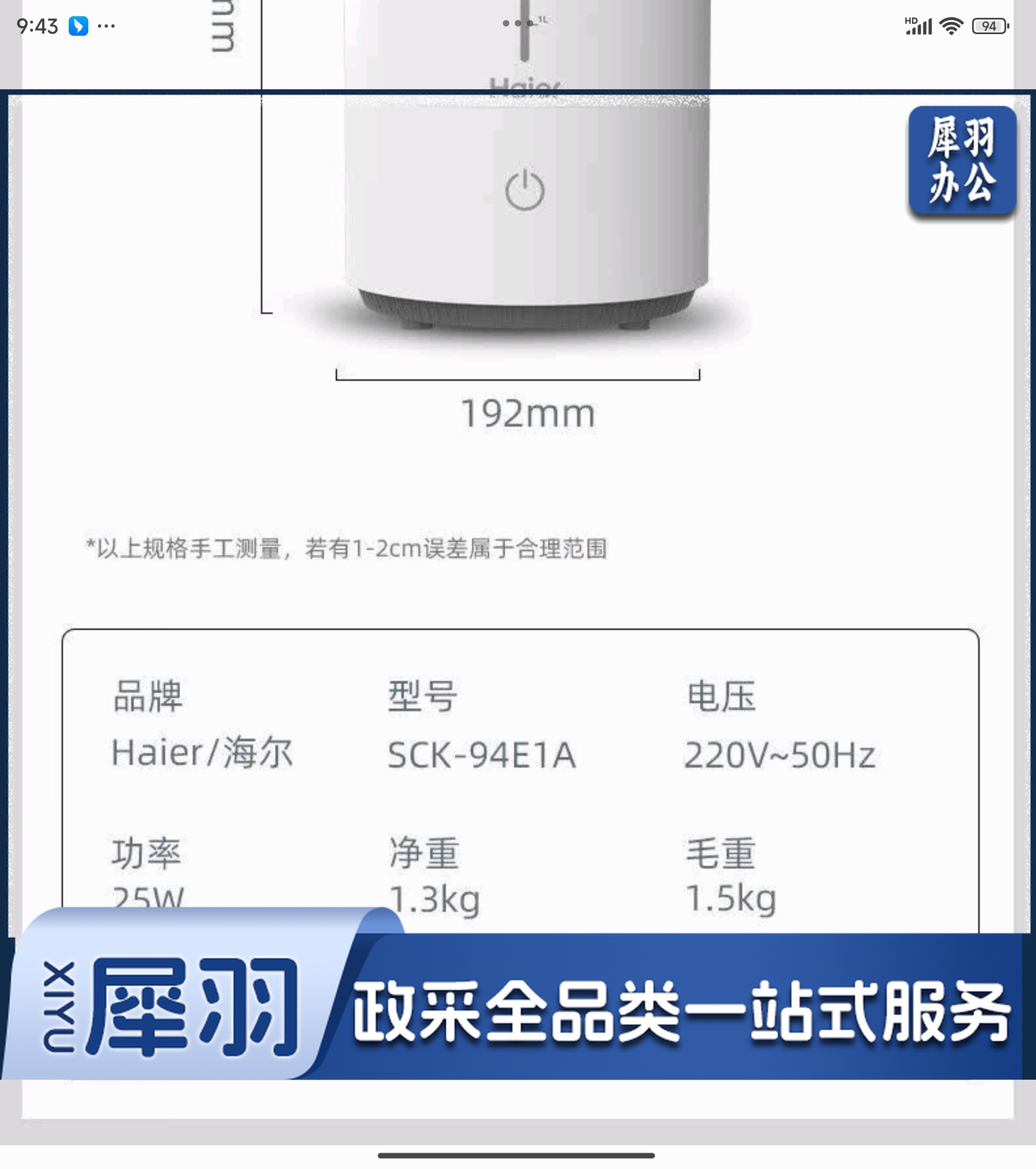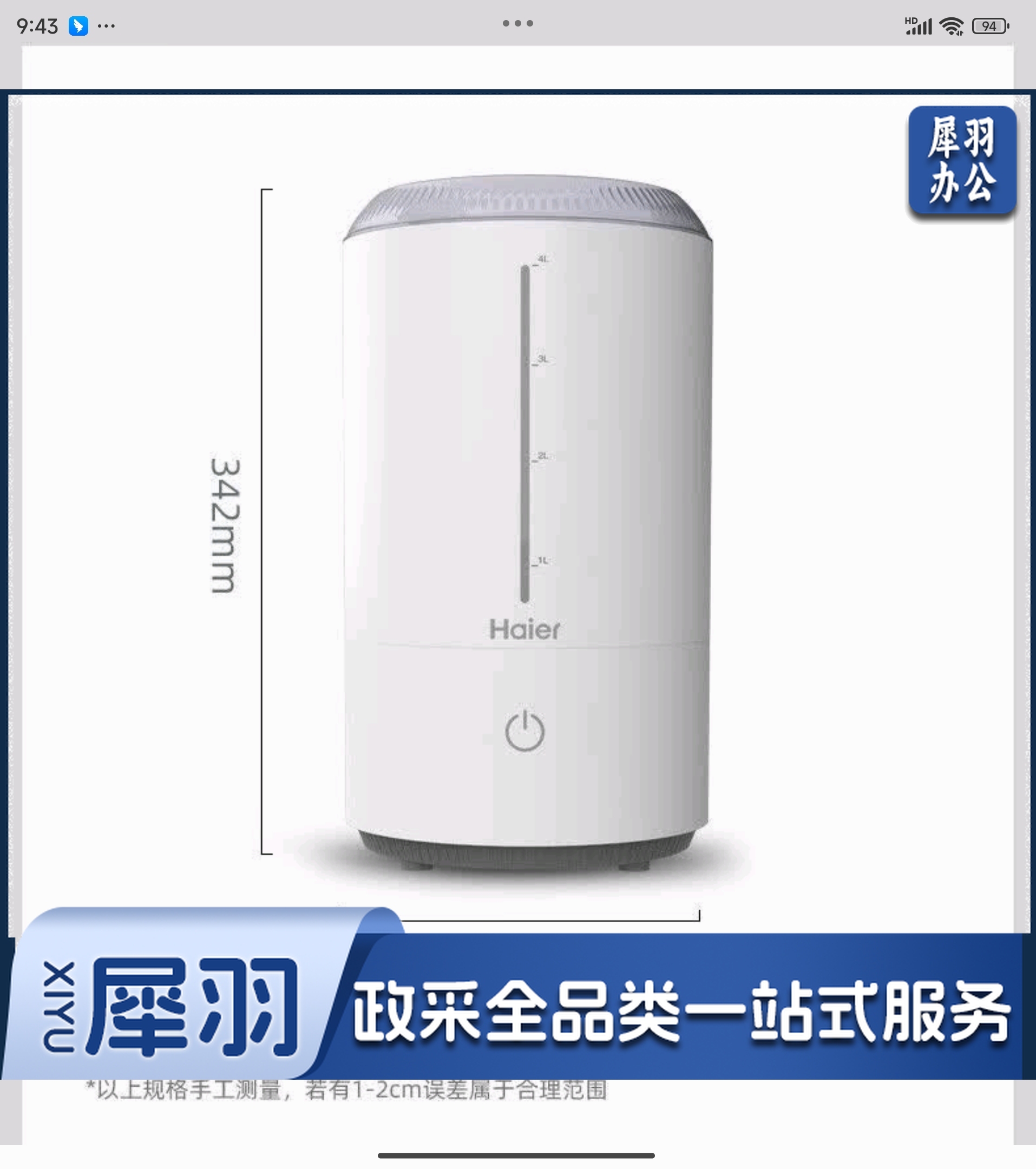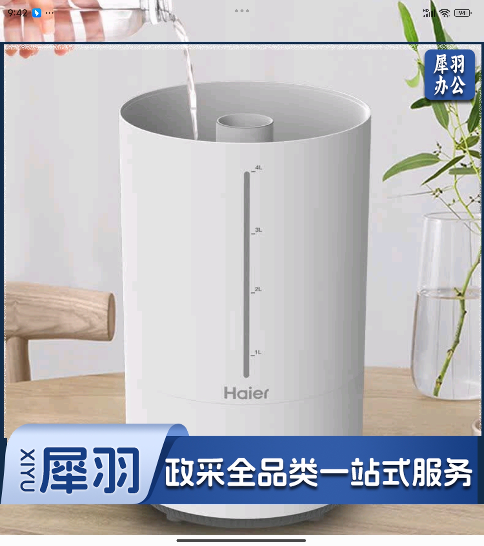 海尔(Haier)加湿器家用卧室轻音孕妇婴空气净化香薰大喷雾办公室加湿器SCK-94E1D【机械过滤款】