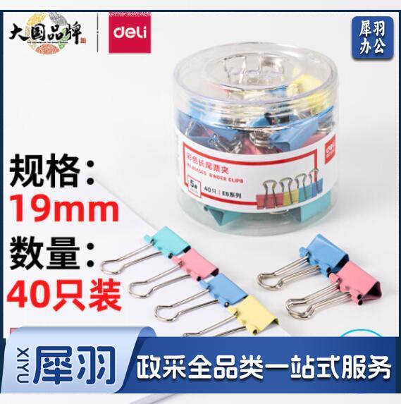 得力(deli)8555ES 40只19mm彩色长尾夹/票据夹(混色)(天津当地当天发货)