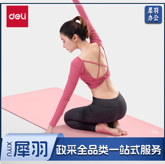 得力(deli)185*80高密度运动健身瑜伽运动垫(绑带+网包)加厚10mm 粉色FD800