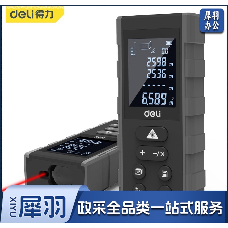100m激光测距仪居家(黑)(1/1/5/50)得力