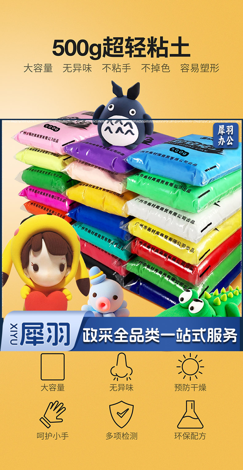 画材酷100克粘土儿童大包装白色黑色100g袋袋装24色轻粘土彩泥太空泥儿童手工制作幼儿园diy手工材料