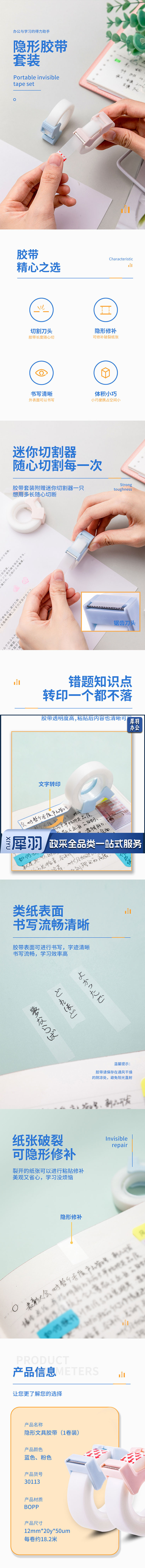 得力/deli 30113 隐形文具胶带套装12mm*20y*50um 1卷/卡(单位:卡) 白色