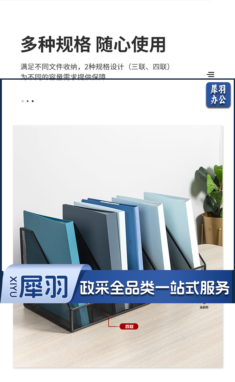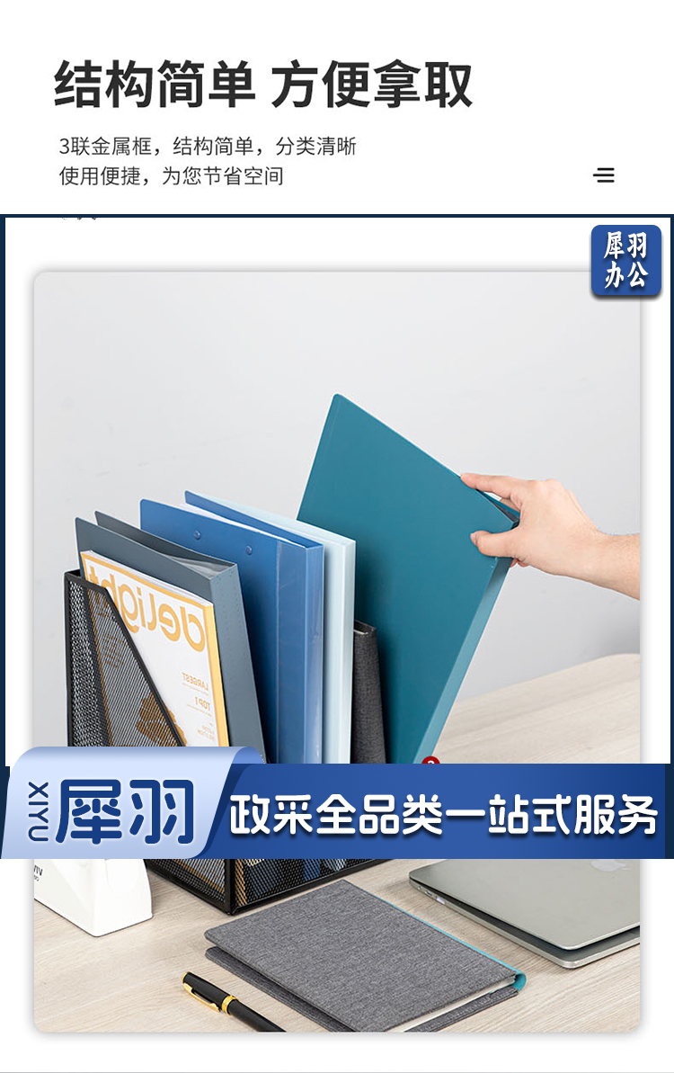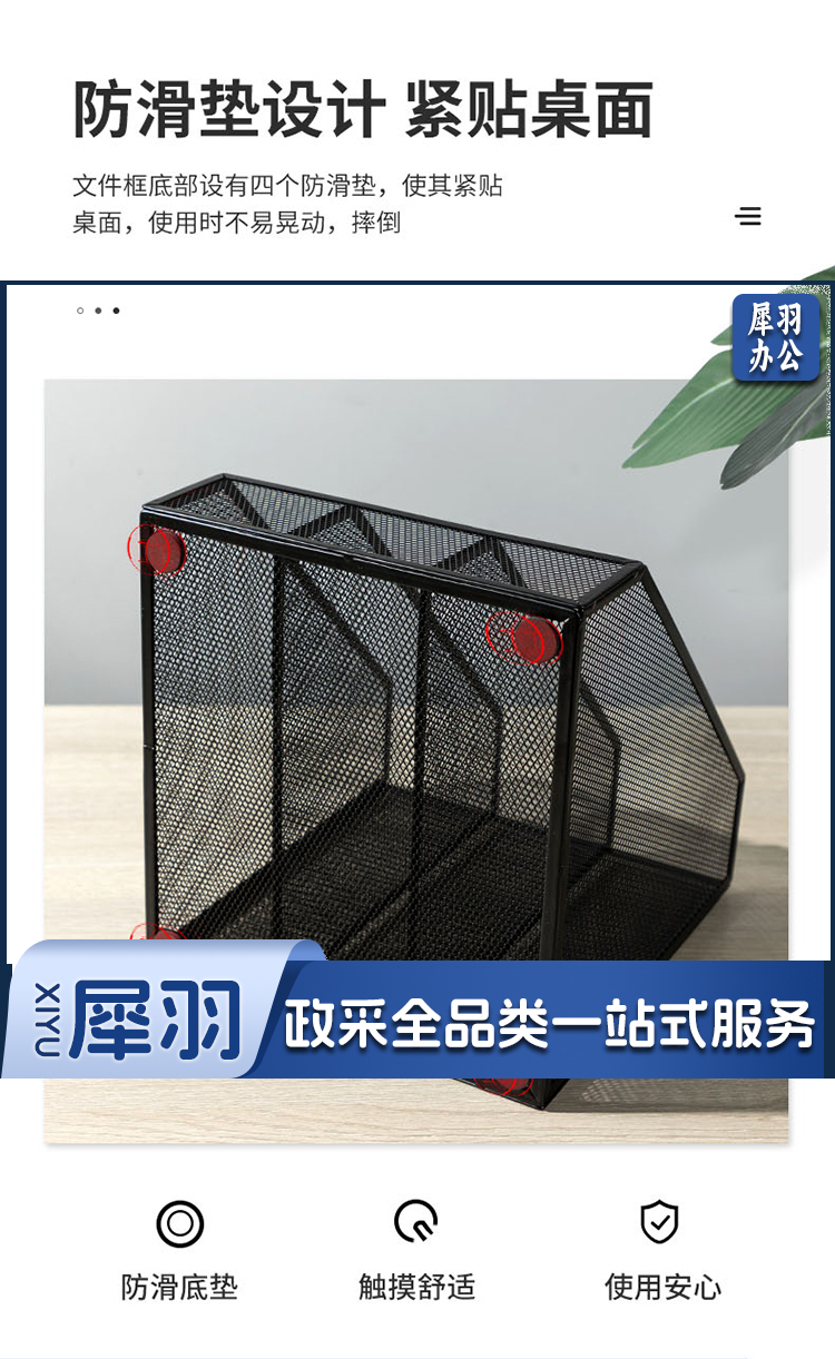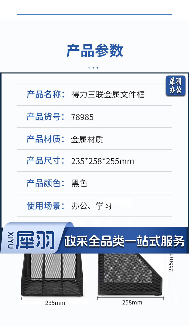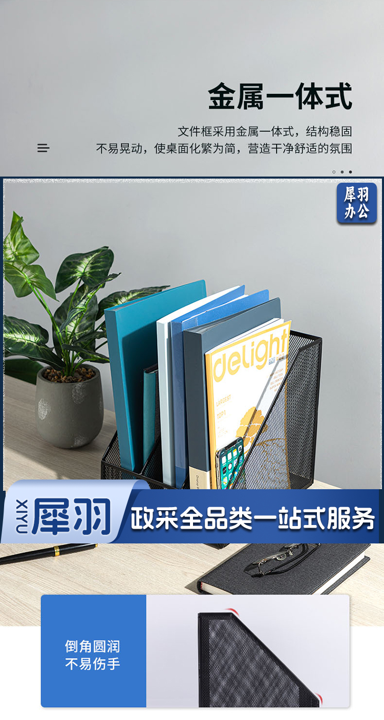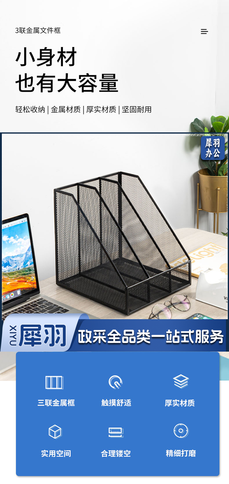 得力(deli) 三联金属桌面文件框 办公室桌面多层资料架子 网状镂空文件架/文件栏 黑色 78985