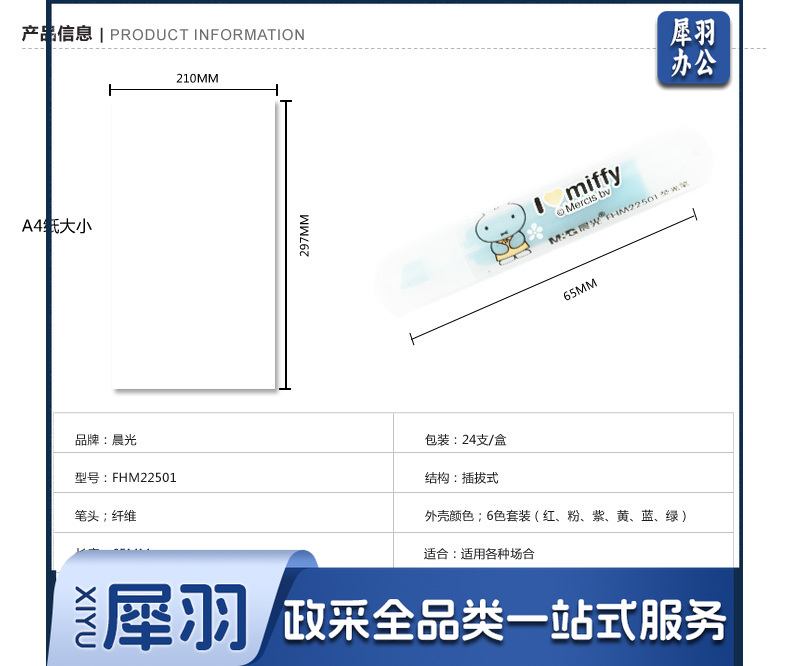 晨光(M&G)FHM22501 米菲荧光笔套装 迷你荧光标记笔 学生办公用品 6支/袋