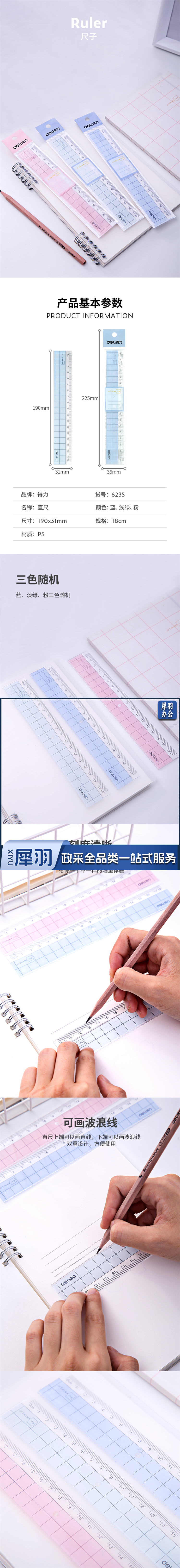 得力(deli) 6235 学生直尺 18cm 10把/组 颜色随机