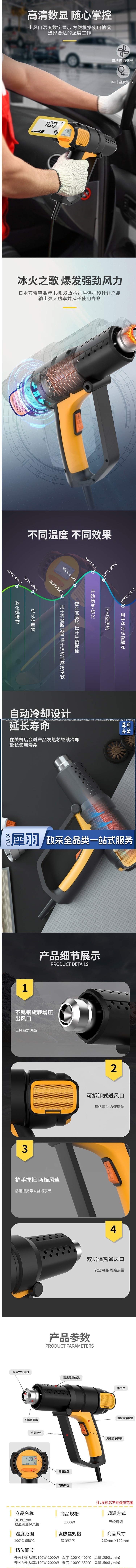 得力(deli) 数显可调温热风枪工业电热吹风机热风筒电烤枪汽车贴膜烤枪收缩膜烘枪2000W 自动冷却 DL391200