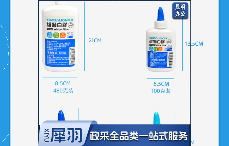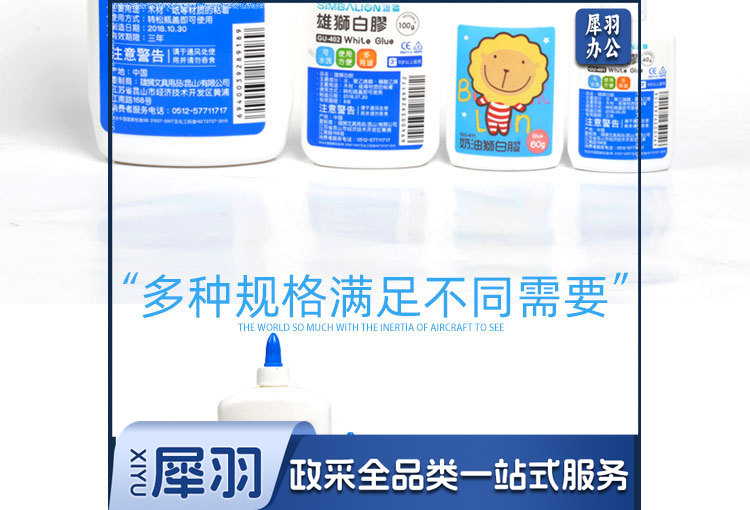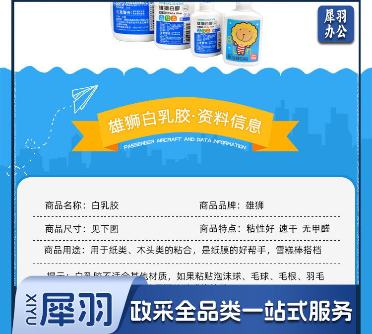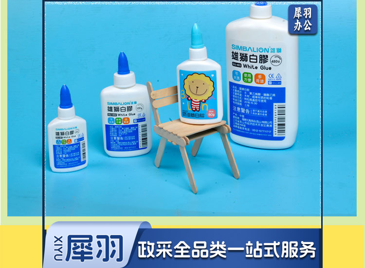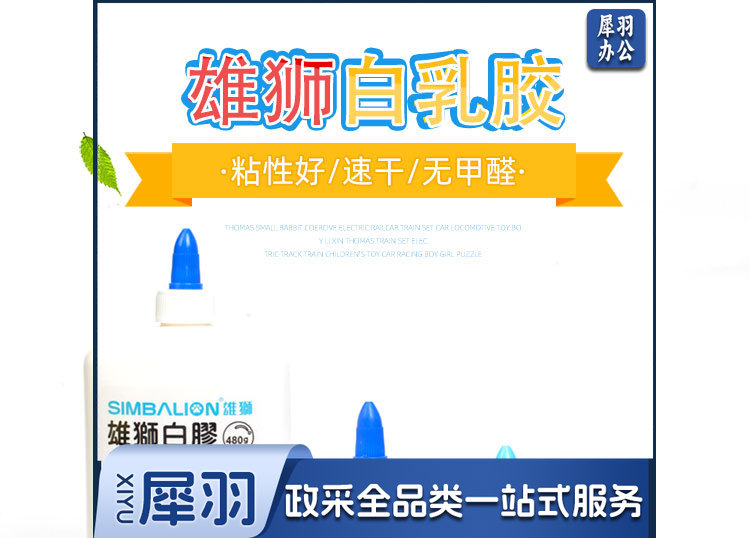 雄狮白胶白乳胶水速干乳胶粘合剂儿童DIY木工手工材料胶幼儿园480g/瓶