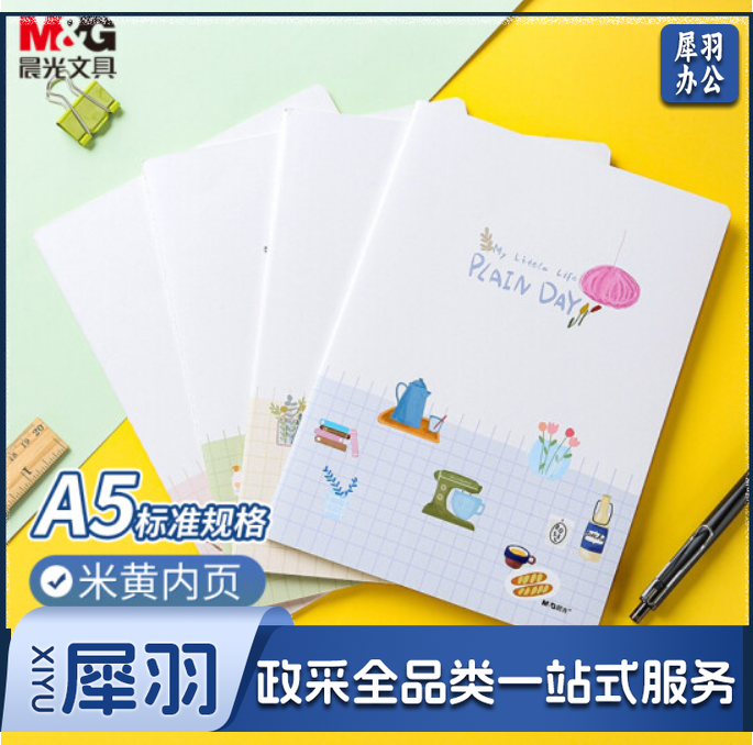 晨光(M&G)文具A5/40张缝线本 记事本笔记本子 悠闲时光系列米黄内页软抄本 学生日记本 4本装FA5465