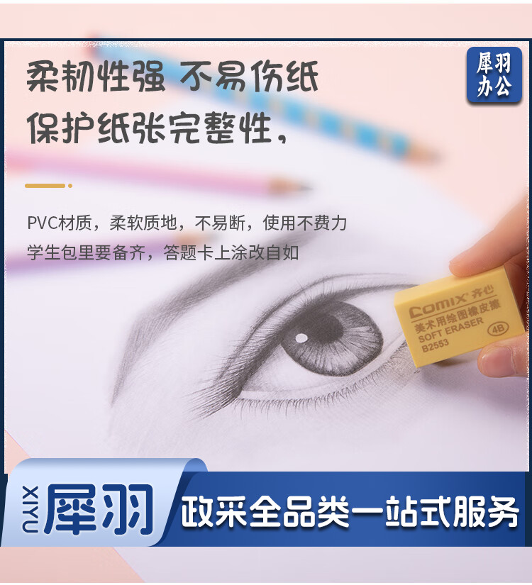 齐心(Comix) B2553 4B美术橡皮擦 30个装