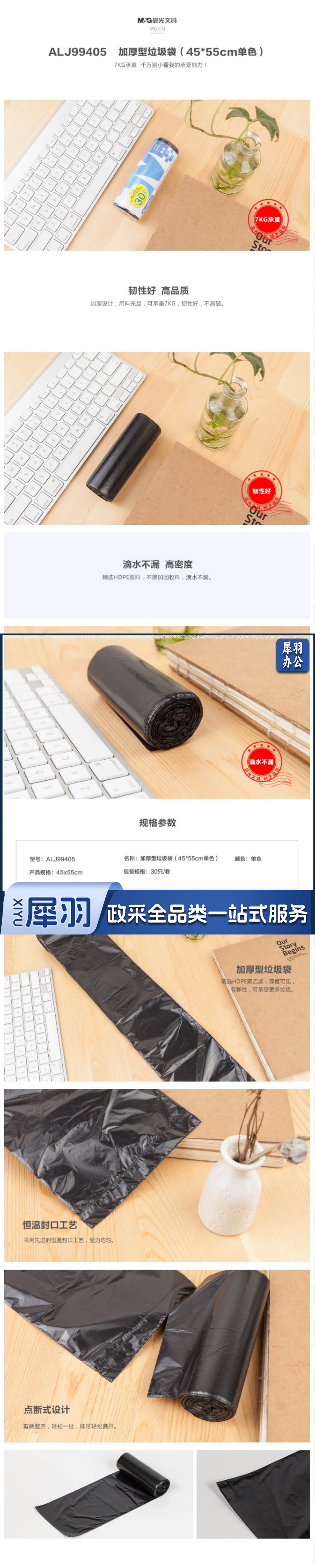 晨光(M&G)ALJ99405 45*55mm单卷黑色断点式垃圾袋 加厚型平口清洁袋 30只/包,8包起售 230208100705
