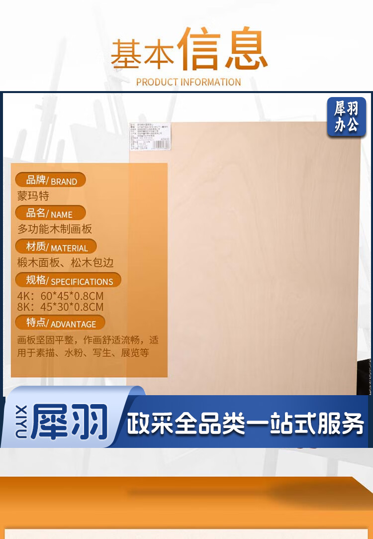 蒙玛特(Mont Marte)椴木4k素描画板45*60cm 美术写生速写板实木画画板成人儿童画架板木质实心绘图板4K空心手提加固画板(45*60*2cm)
