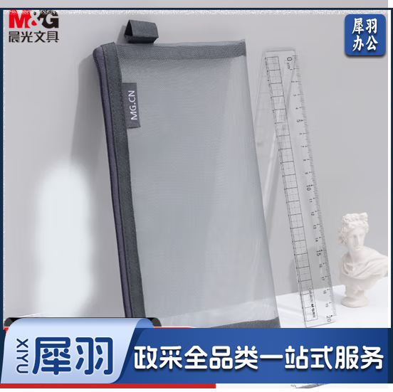 晨光(M&G)文具透明网纱笔袋 考试专用袋 文具袋文具盒 灰色 开学文具APB95494