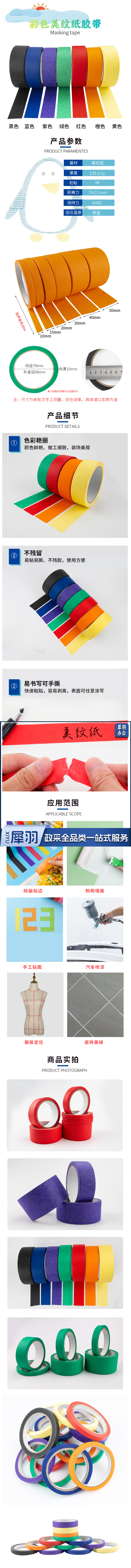 海斯迪克 HKLY-198 20mm*20m彩色美纹纸胶带(7卷/组)1组装