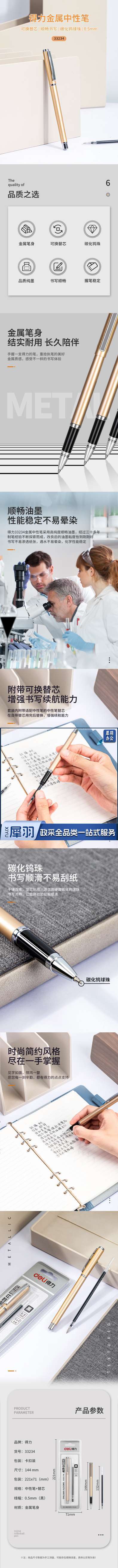 得力33234中性笔0.5mm子弹头(黑色)(1笔+1芯/卡)...