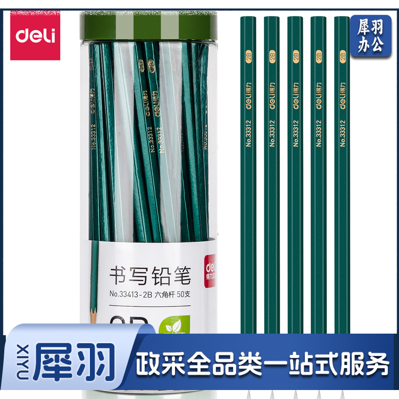 得力33413-2B_50支PET桶装绿杆2B铅笔(混)(50支/桶)