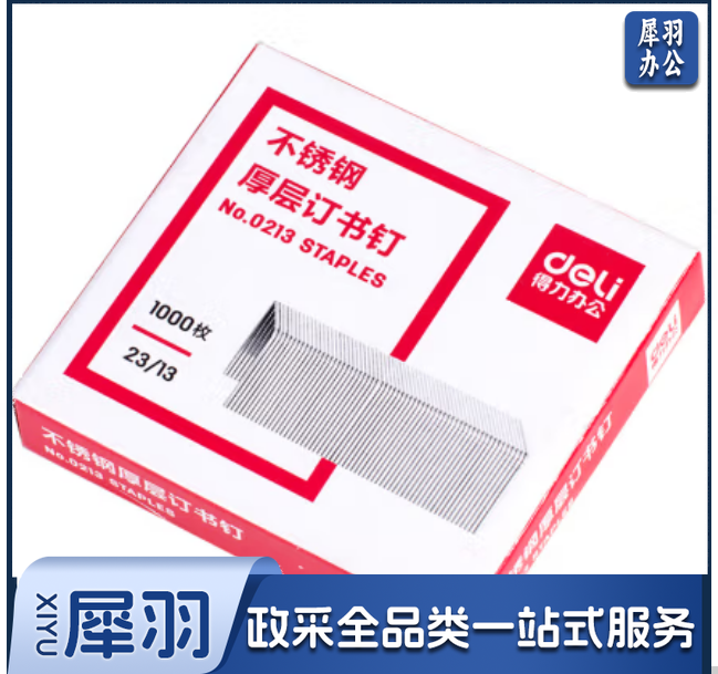 得力 deli 0213不锈钢厚层订书钉23/13(1000枚/盒) 0213(单盒装)
