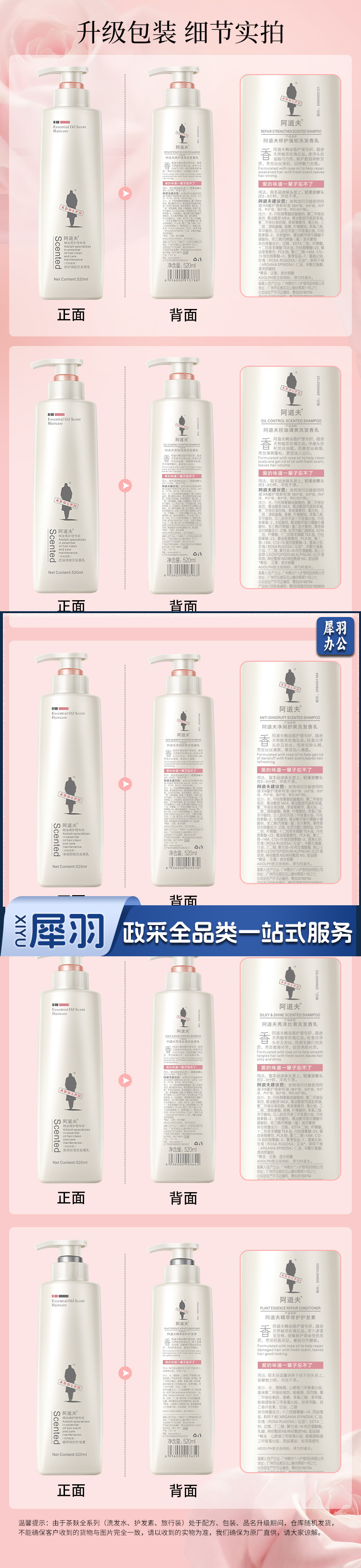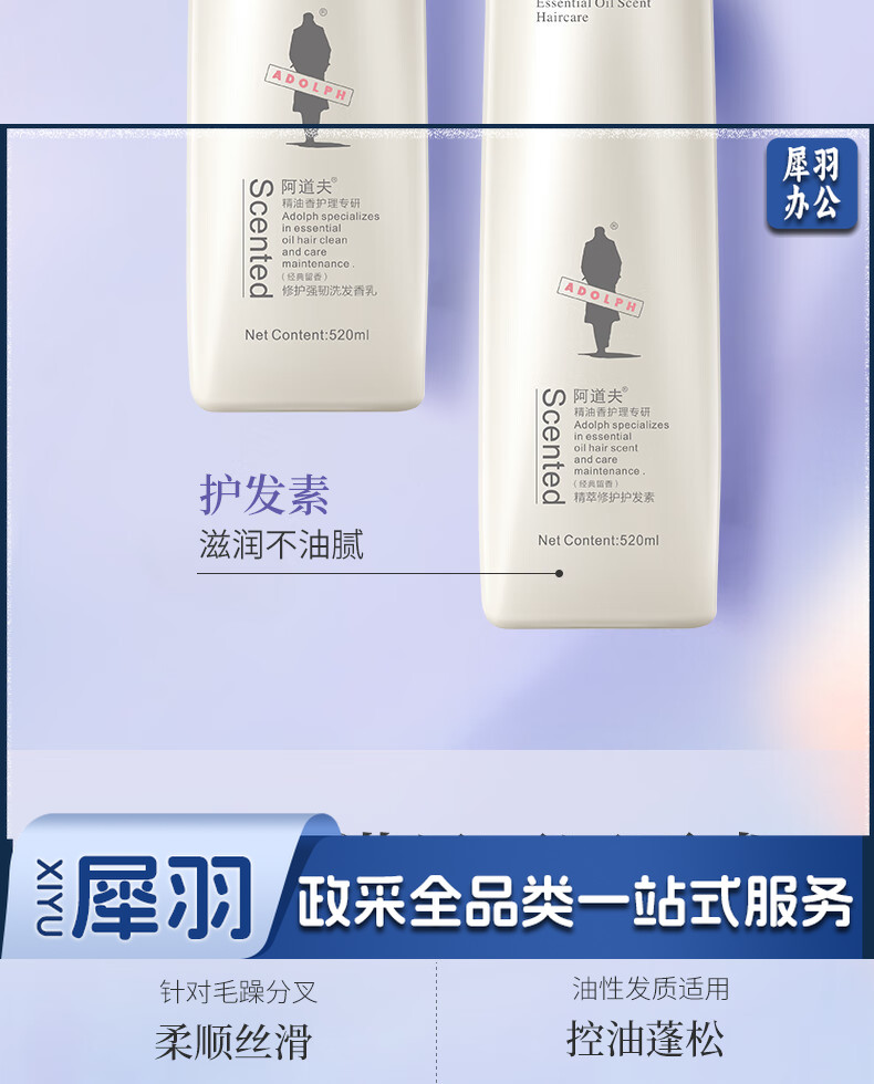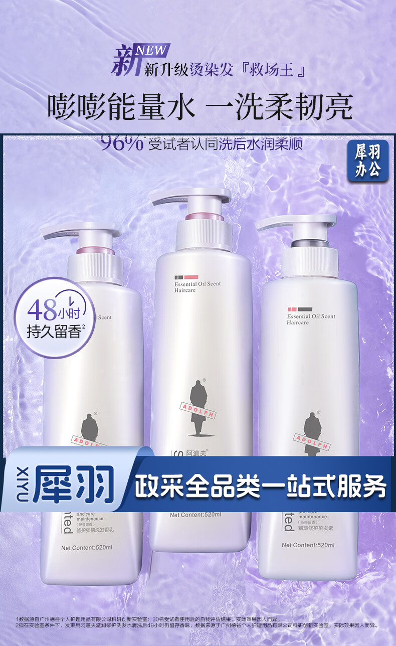 阿道夫修护滋养洗发水520ml*2+护发素520ml 香氛洗护套装男士女士通用