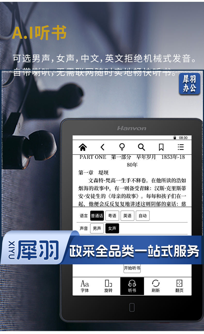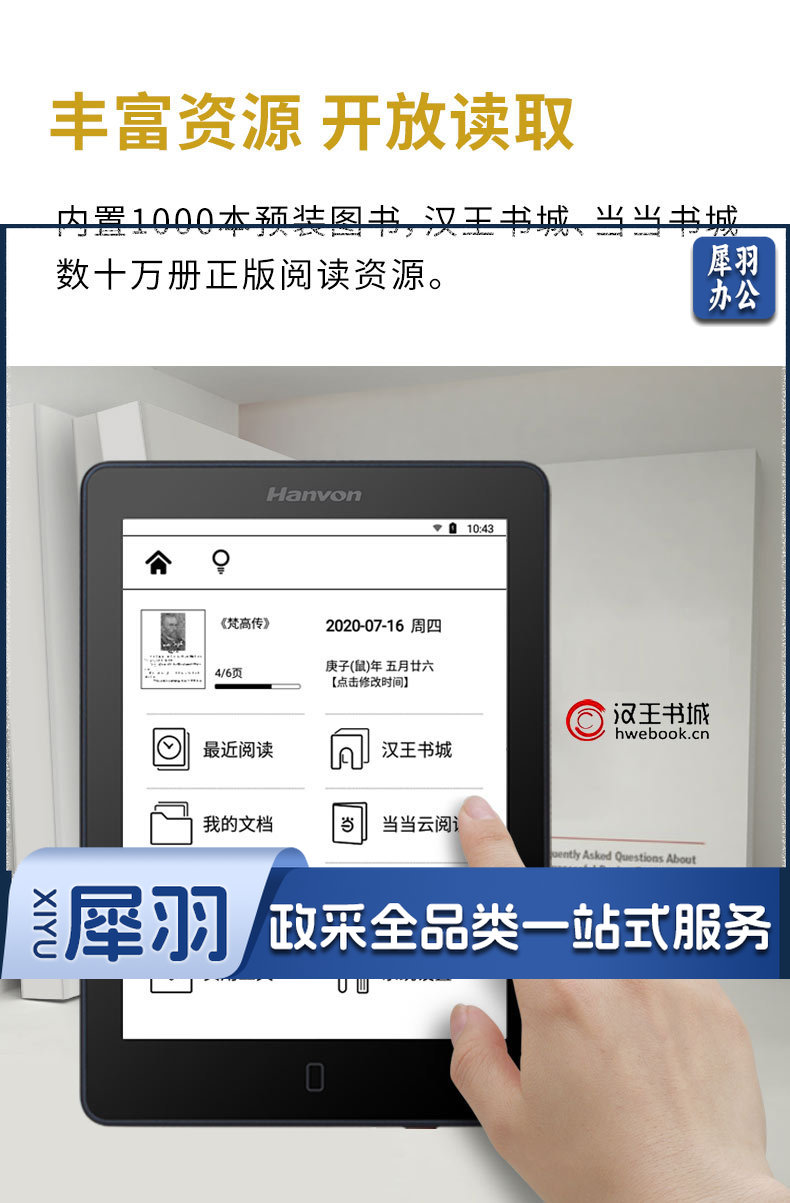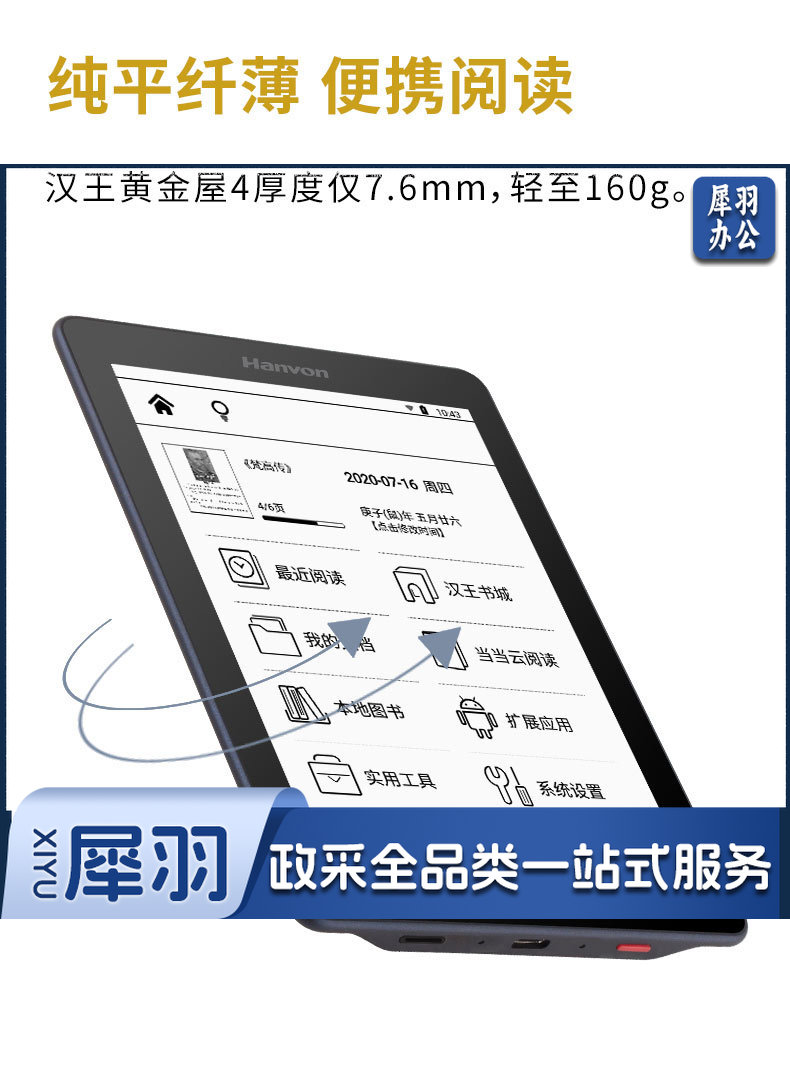 汉王(Hanvon) 汉王电纸书黄金屋4听书 电子书阅读器学生墨水屏6英寸高清读书器护眼小说