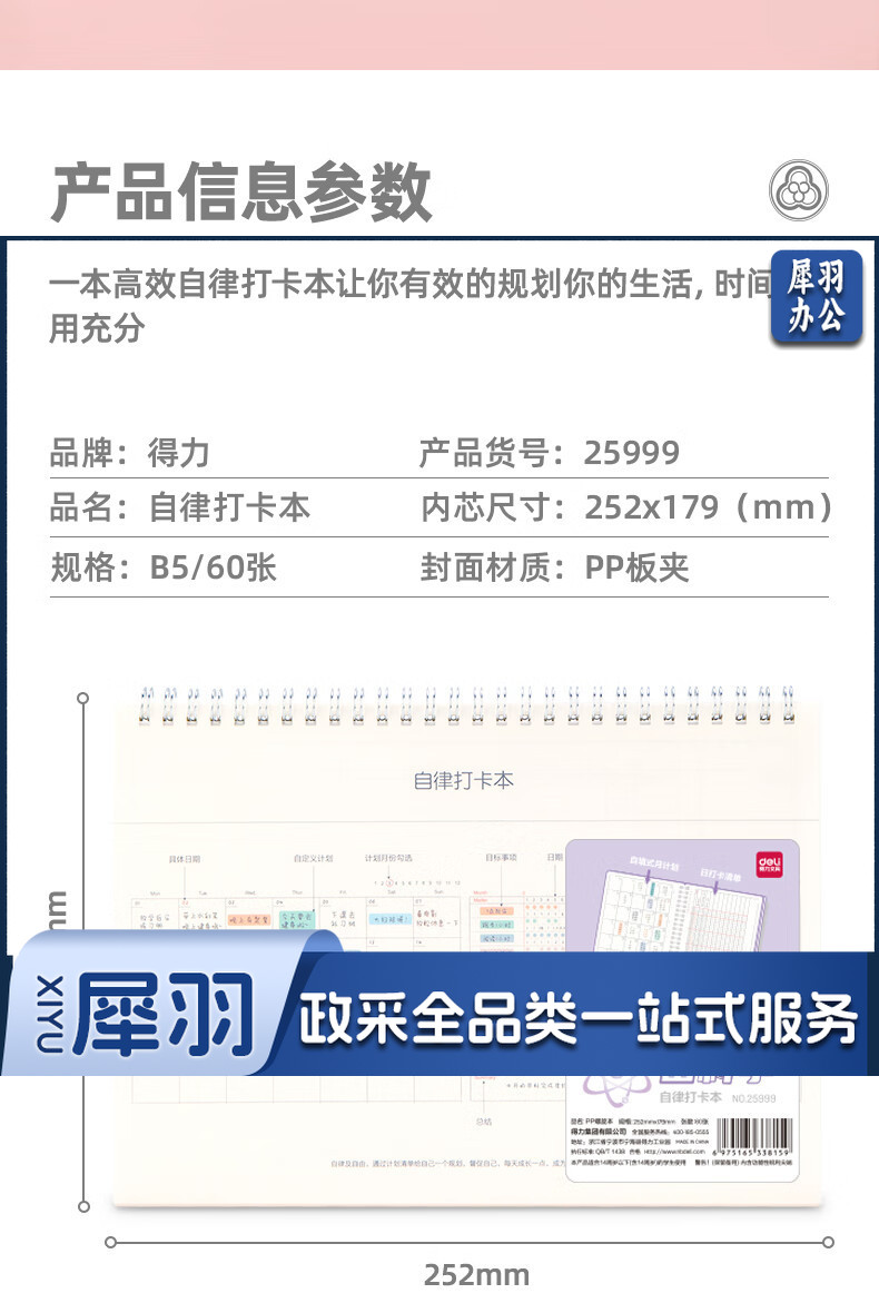 得力(deli)自律打卡本计划本螺旋本 习惯养成时间管理月周规划每日学生日程思维导图本子学习考研文具 25999