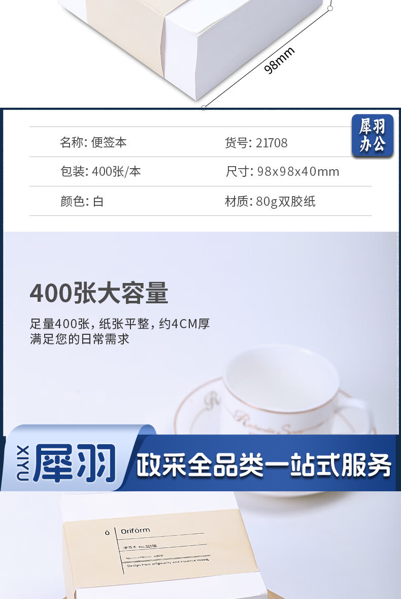 得力(deli)400张98*98mm简洁白色便筏本便条本便签纸便签本子21708