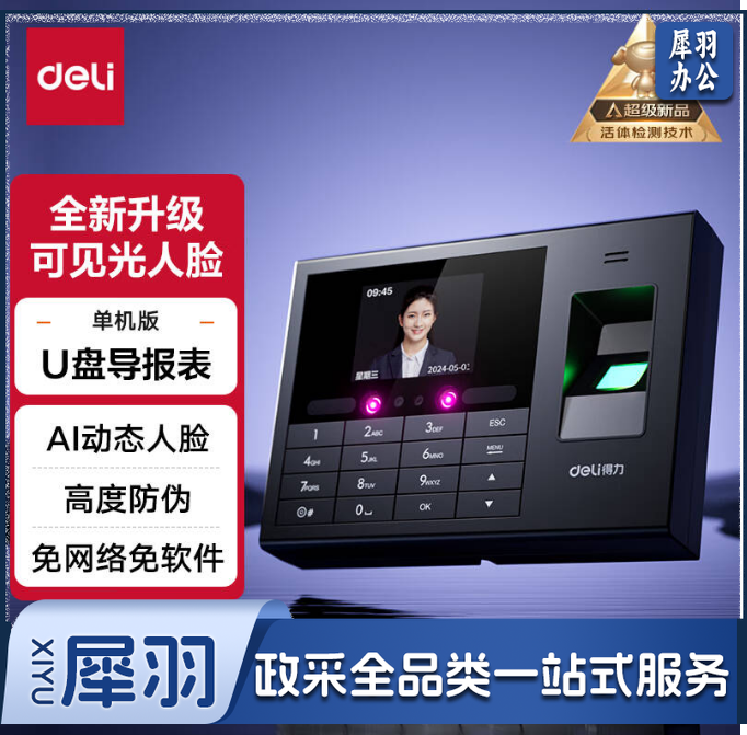得力智能考勤机 动态人脸 打卡人脸+指纹识别33868PRO