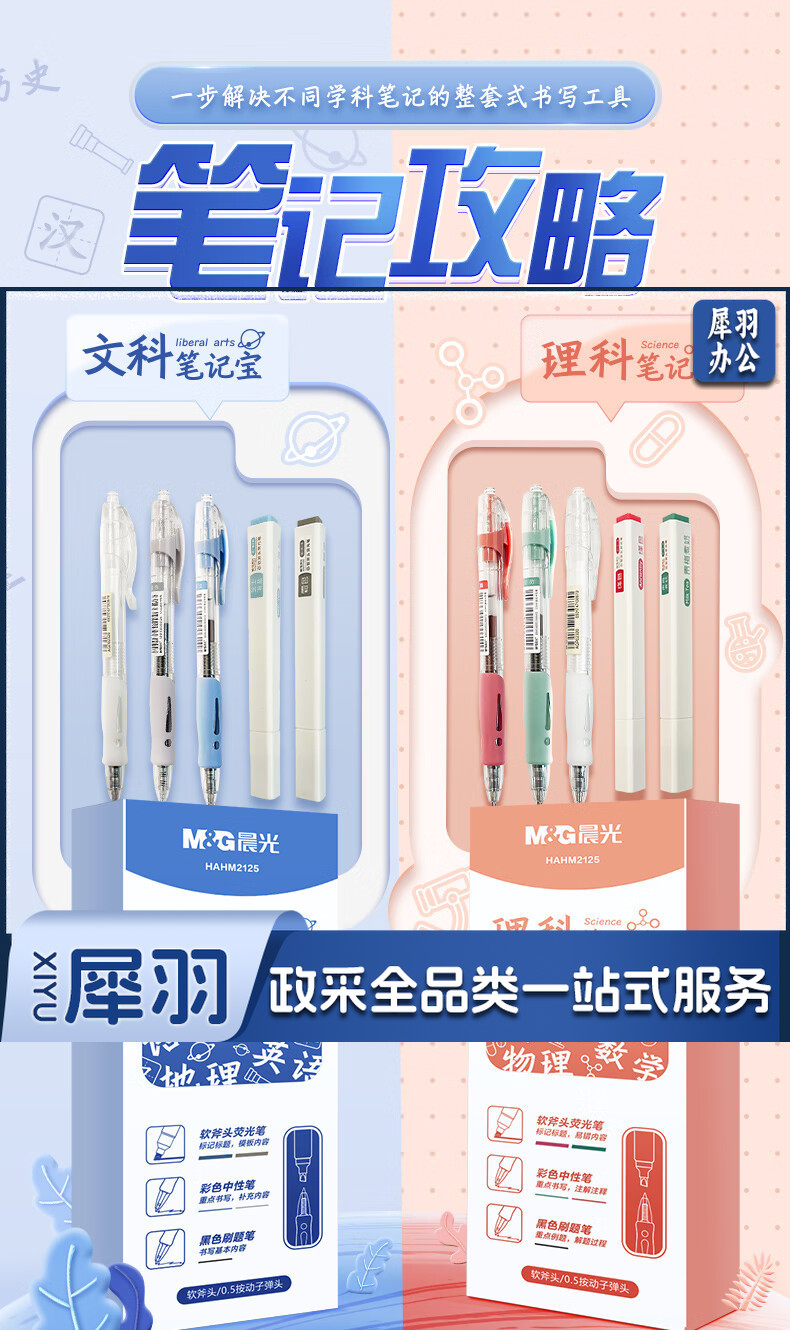 晨光(M&G)HAHM2125B 1008刷题笔套装(彩色荧光笔*2+黑色按动刷题笔*1+彩色标记中性笔*2) 文科笔记宝