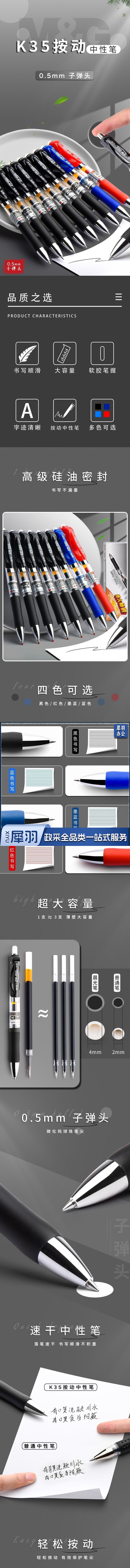 晨光(M&G)K35黑色0.5mm经典子弹头中性笔按动签字笔水笔 12支/盒