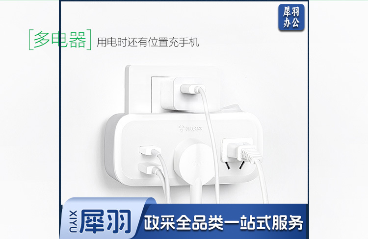 公牛(BULL)插排 多功能插座/一转多保护门/ 扩展转换器 /适用于卧室、厨房 GN-9603 品字形无开关一转三