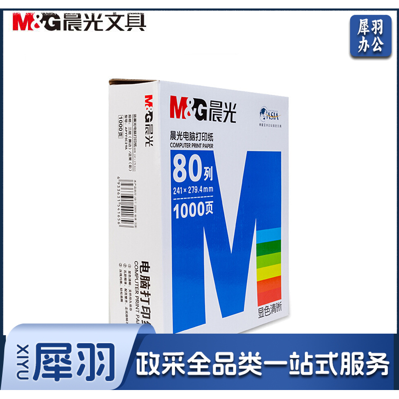 晨光(M&G) 打印纸 蓝晨光(撕边)241-3(彩) APYY5C29A 三联一等分 1000页/包