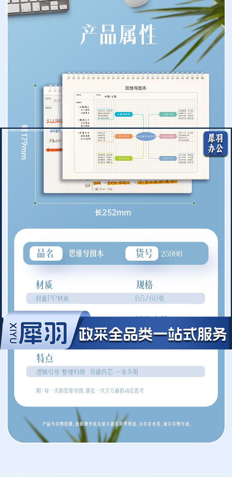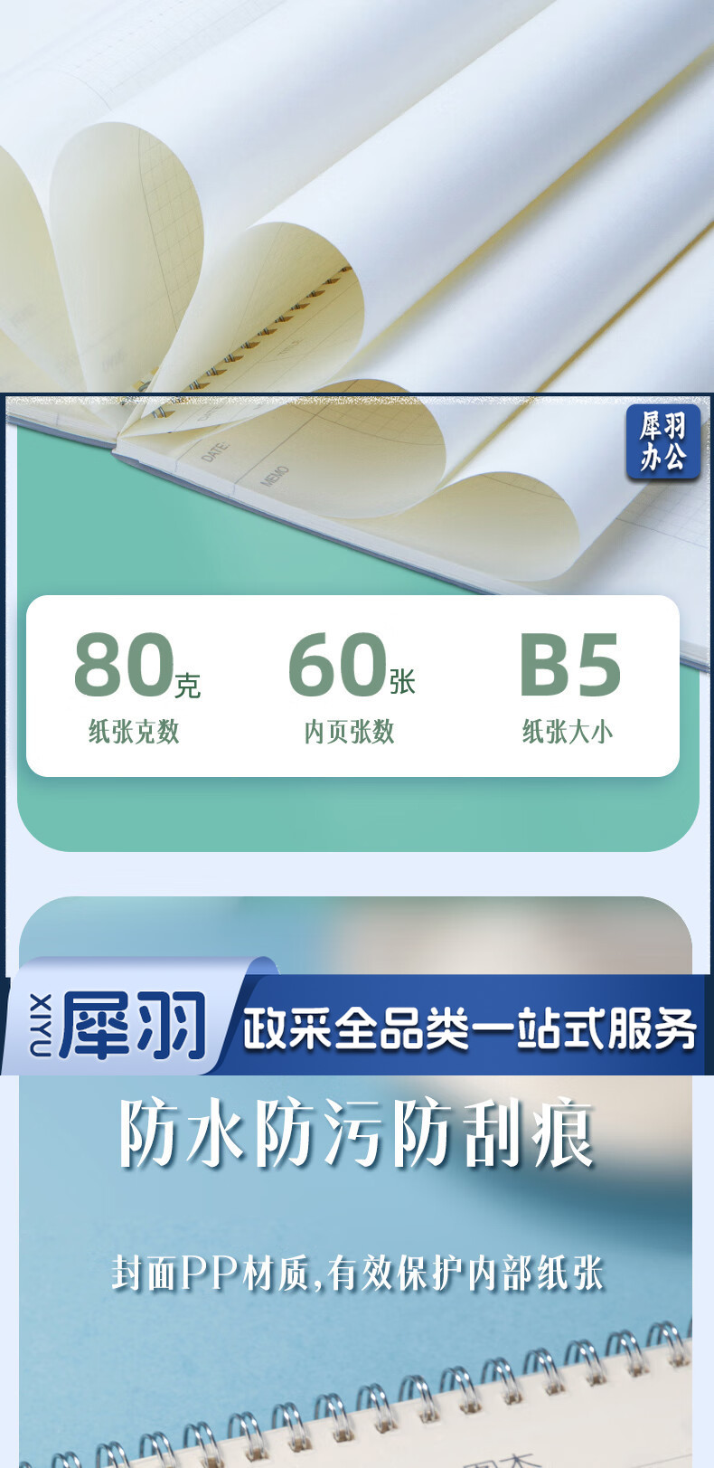 得力(deli)B5/60张考试线圈本 螺旋本笔记本思维导图本25998