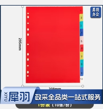 彩色分类页数字索引页塑料11孔隔页纸分页配活页夹使用