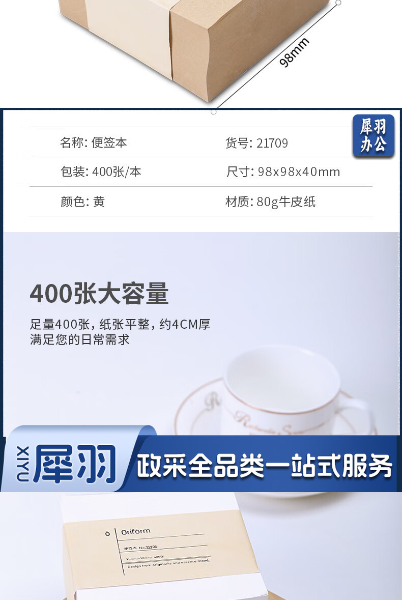 得力(deli)400张98*98mm牛皮纸便筏本便条本便签纸21709