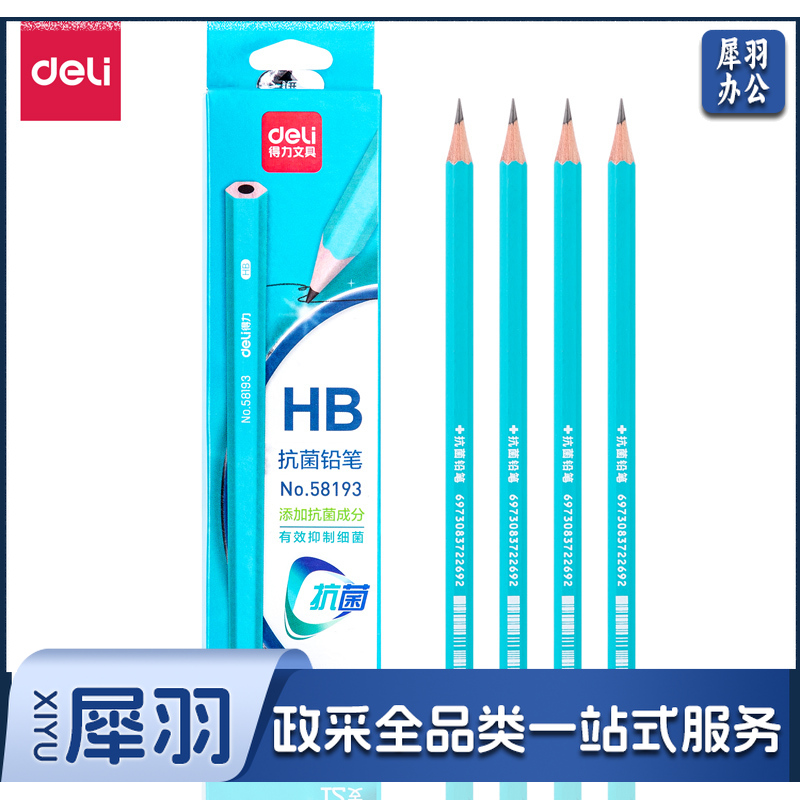 得力(deli)58193_抗菌HB书写铅笔12支彩盒装(混)(12支/盒)