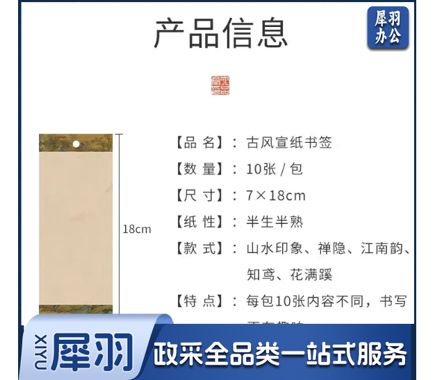 六品堂 宣纸书签古典中国风手工diy材料空白古风自制书签空白卡手写书法自写