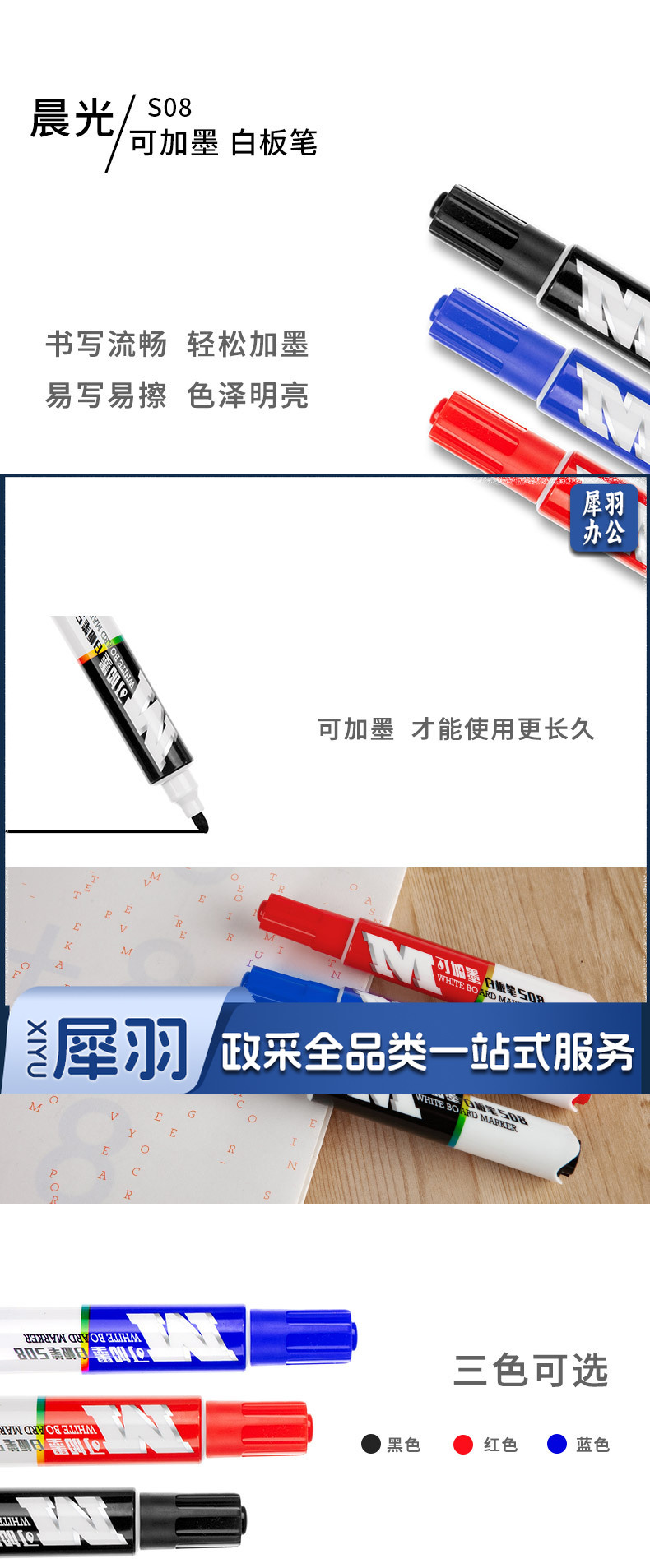 晨光 M&G 白板笔 AWMV2002 白板笔 晨光经济型可加墨白板笔S08 AWMV2002单支装白板笔(蓝)白板笔