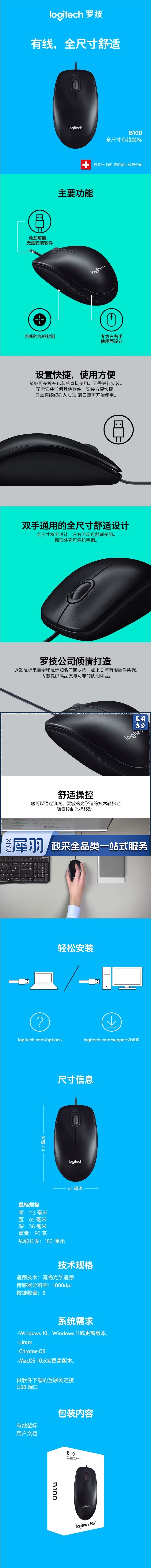 罗技 B100 鼠标 有线鼠标 对称鼠标 黑色 单位:个