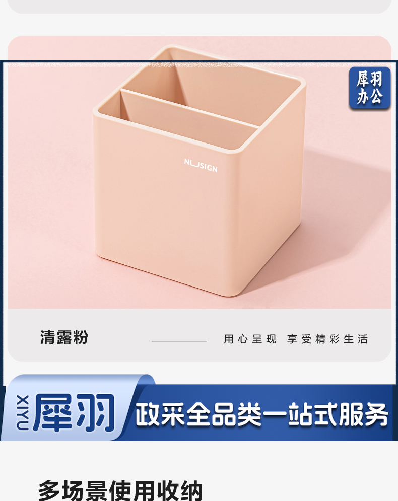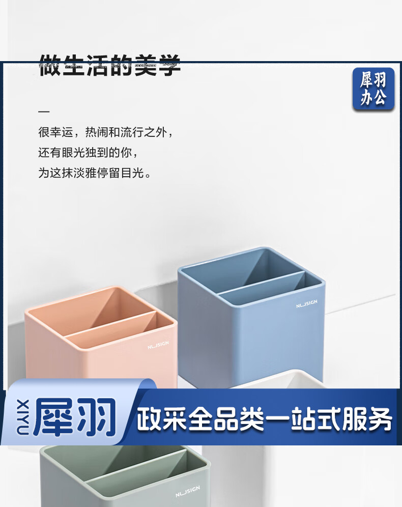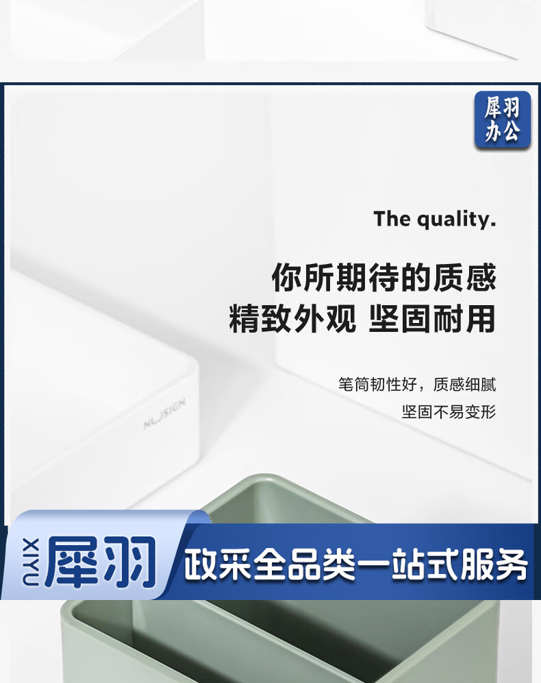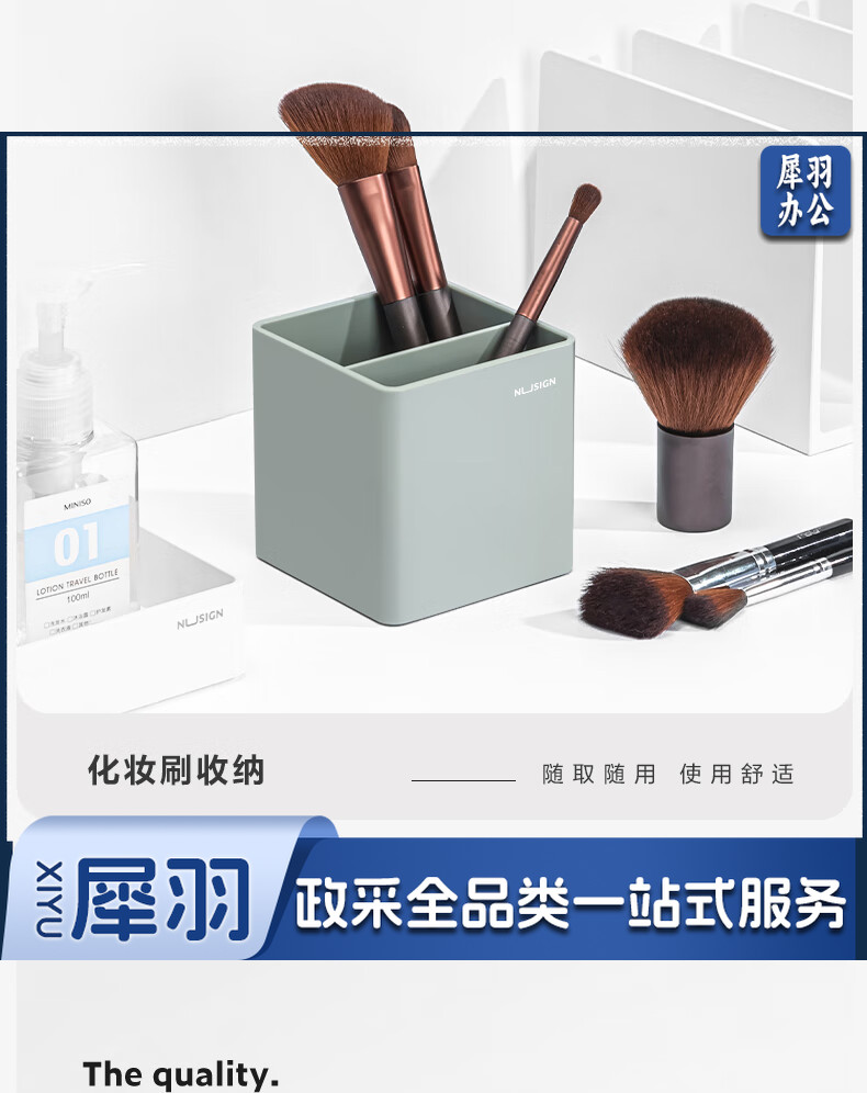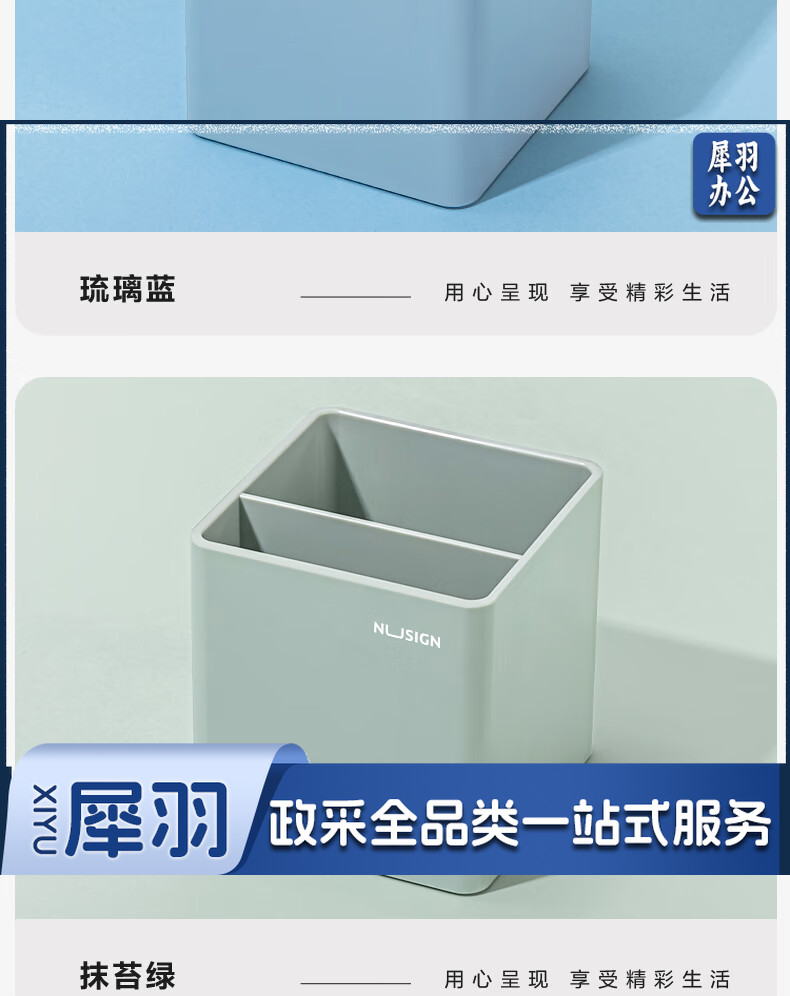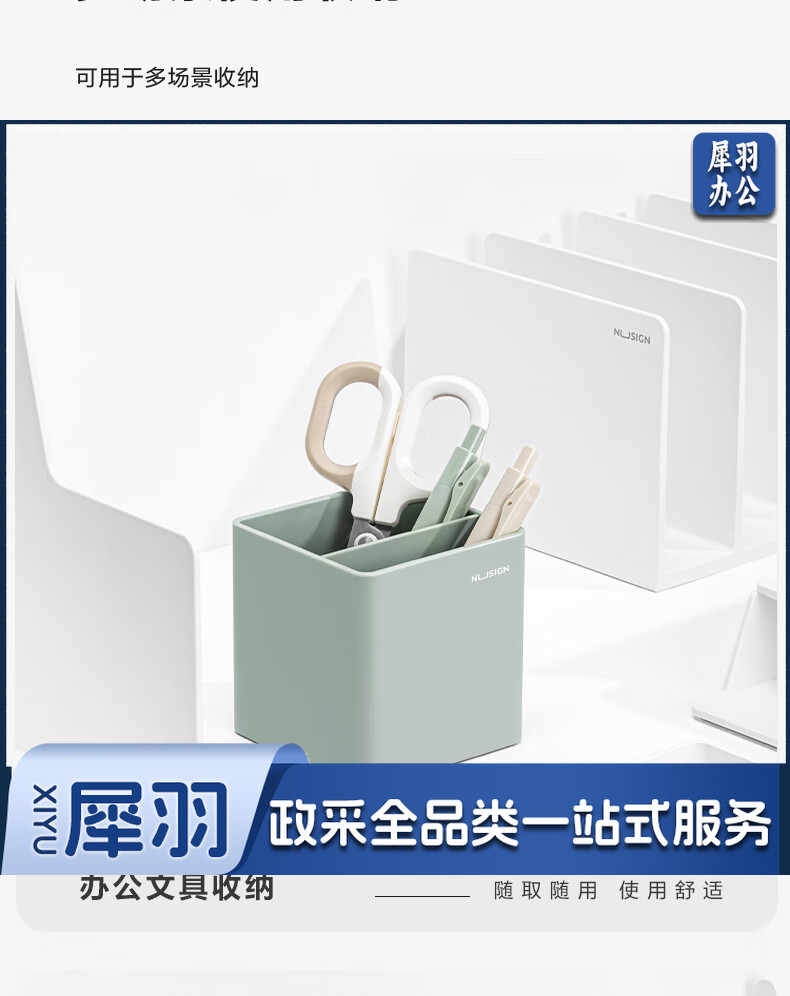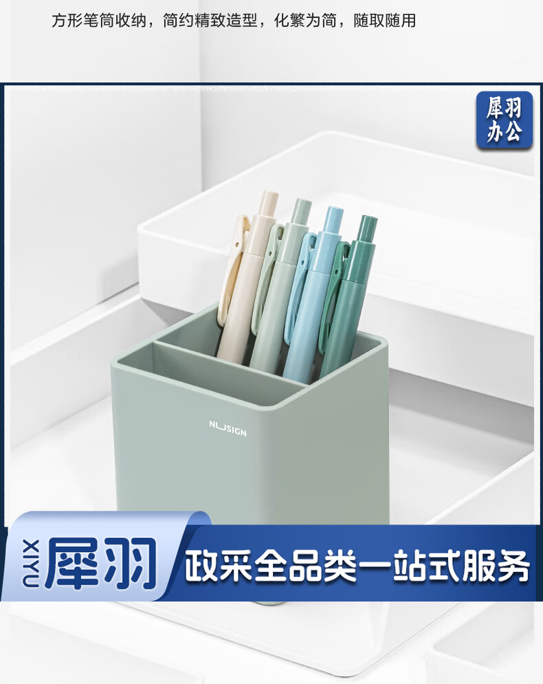 纽赛(NUSIGN) 方格笔筒 ins办公室桌面收纳防滑底 抹苔绿NS011