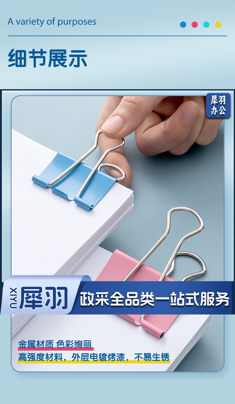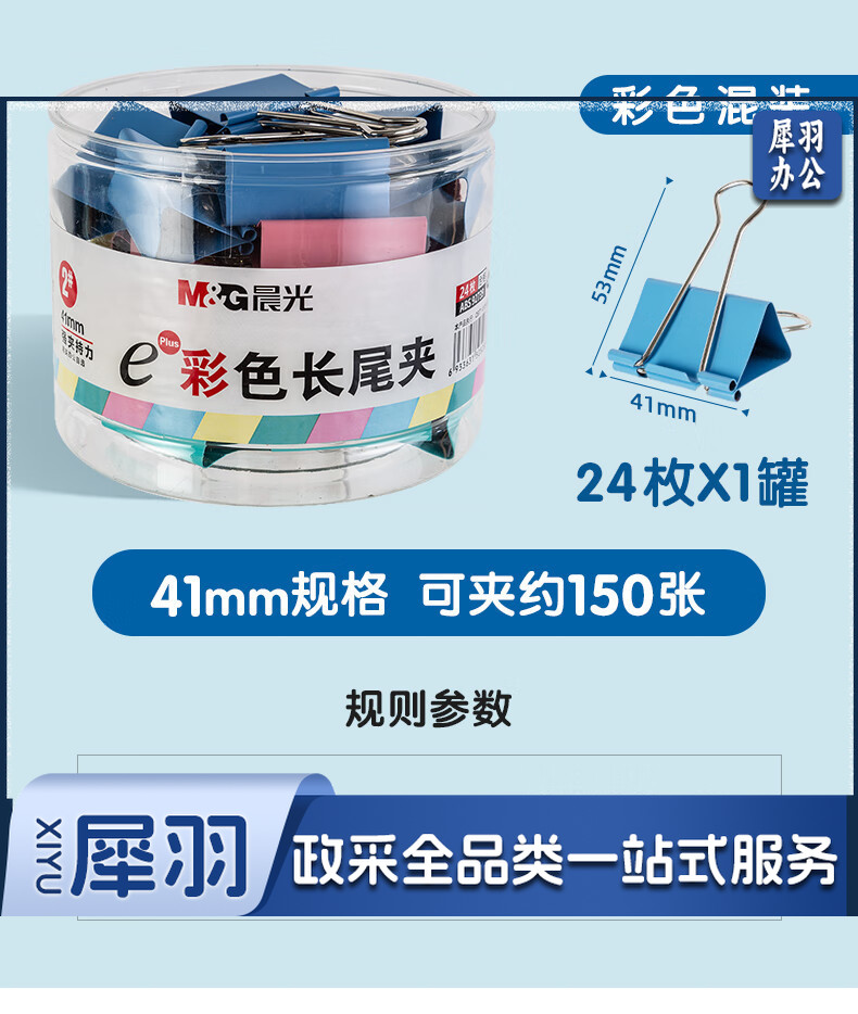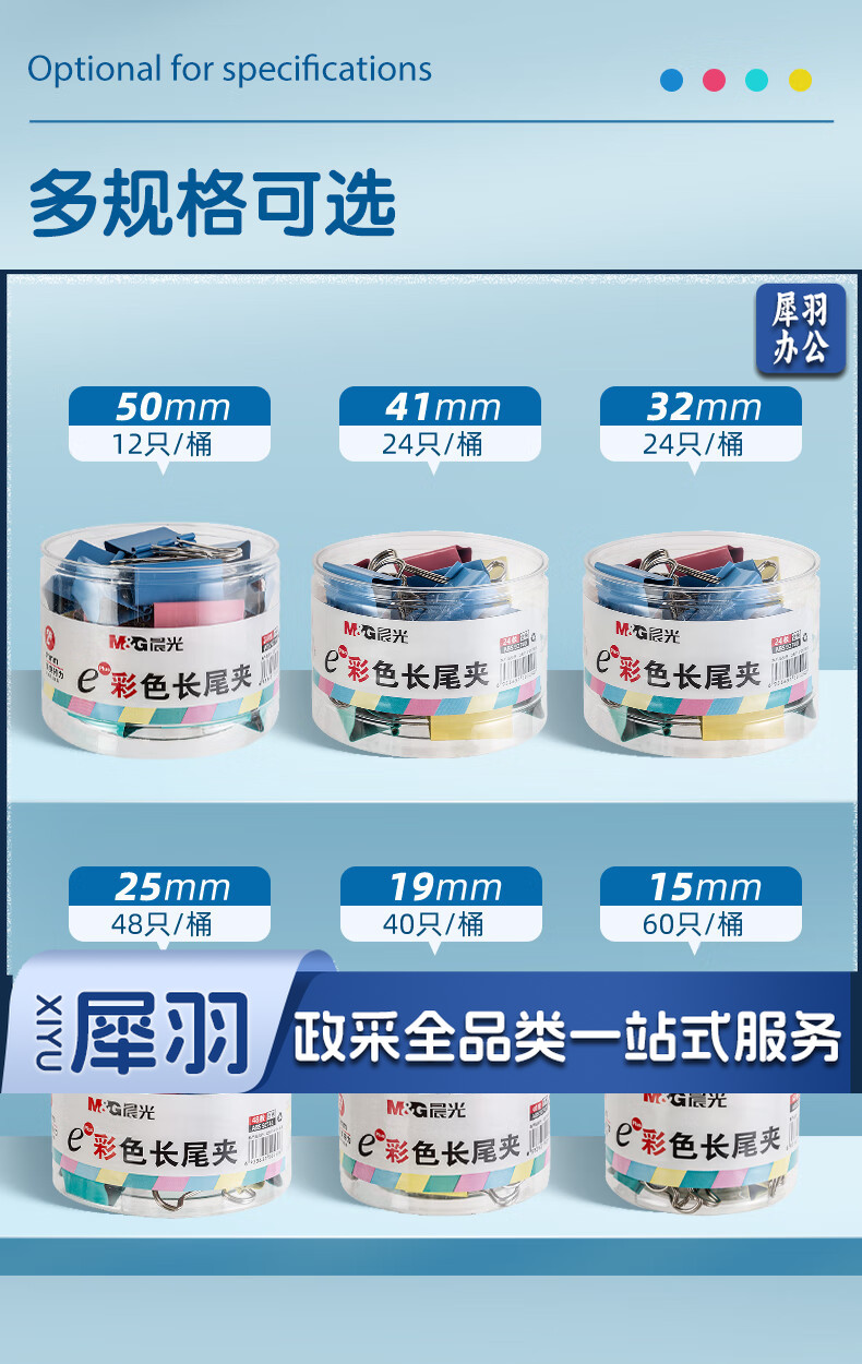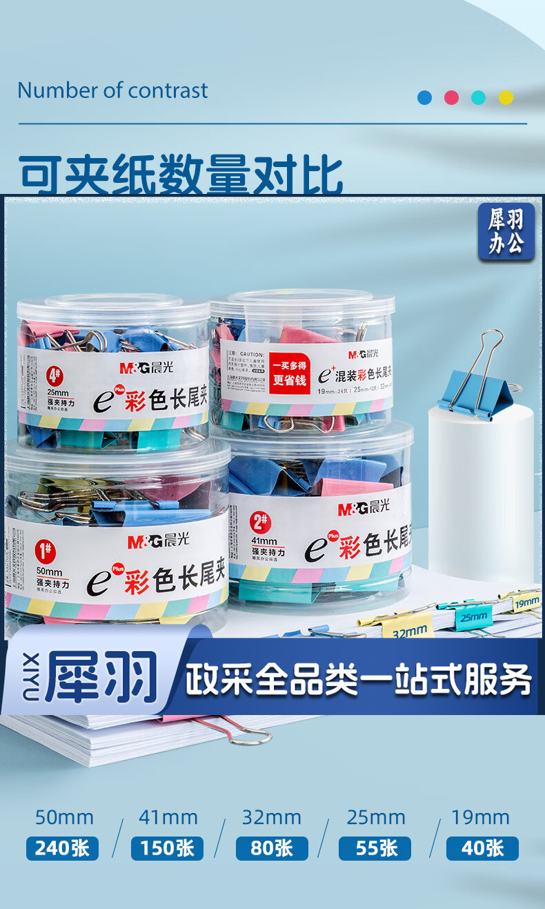 晨光(M&G)文具2#41mm 24只/罐 彩色长尾夹 大号金属票据夹 Eplus系列办公燕尾夹 ABS92739