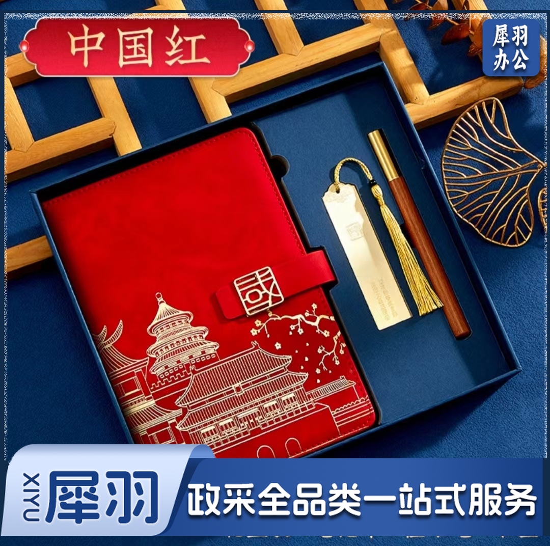 A5笔记本礼盒套装书签伴手礼 商务公司年会礼品 红色 三件套