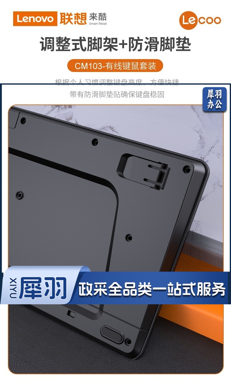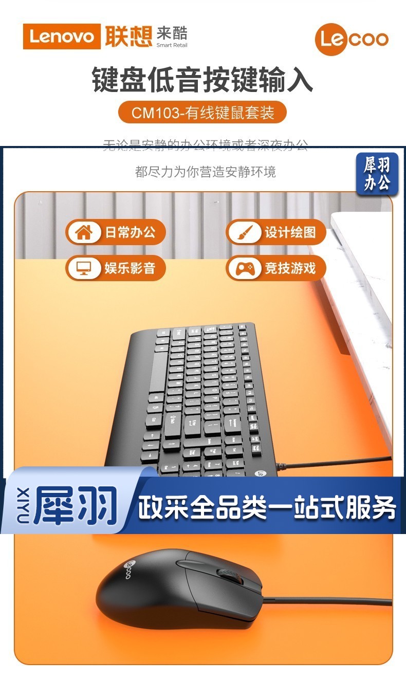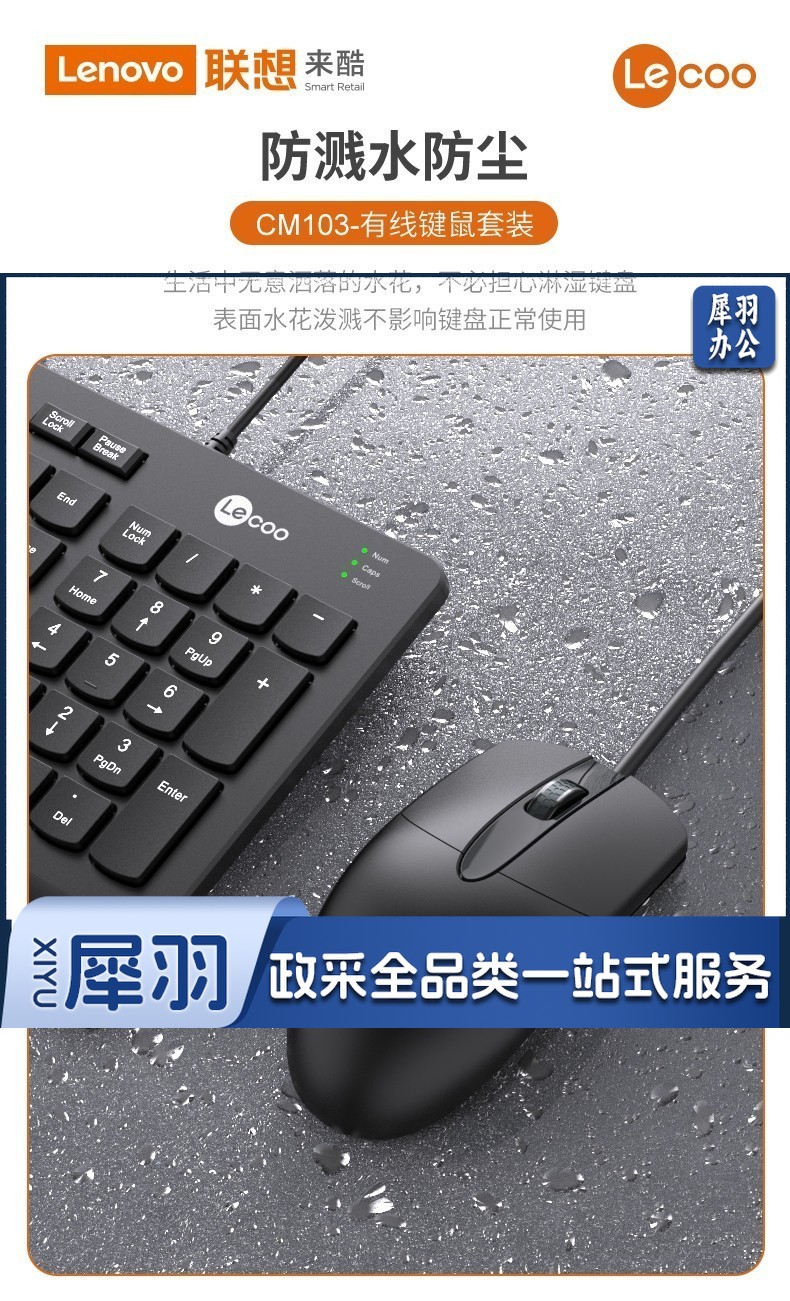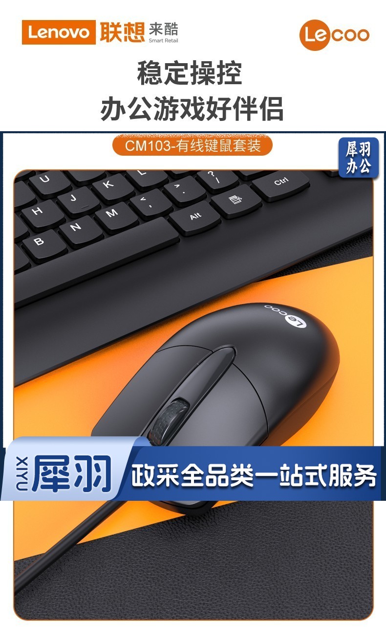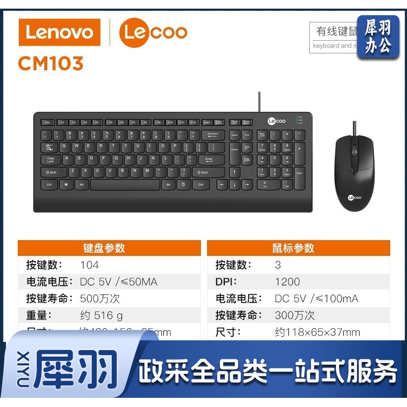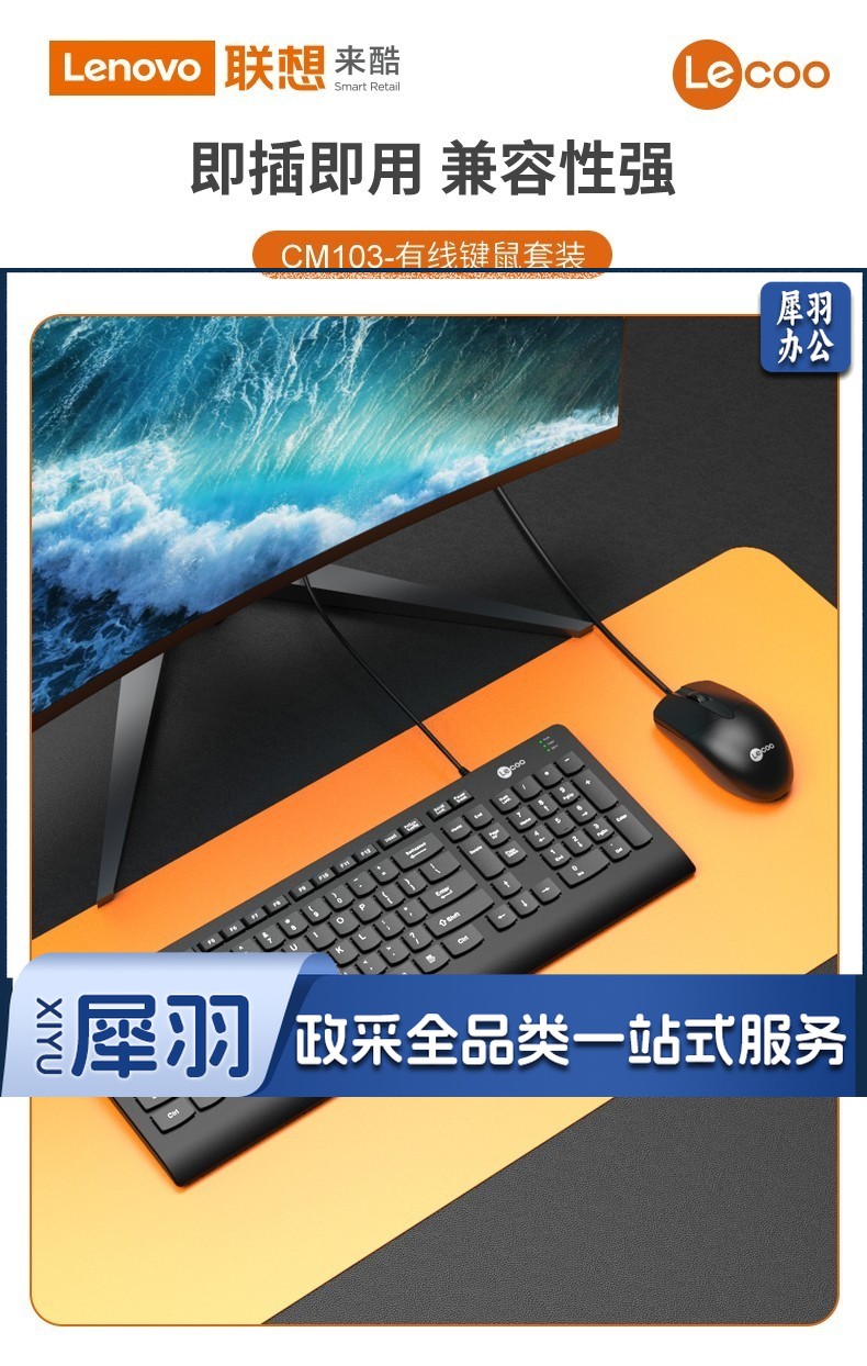 联想来酷CM103有线键鼠套装 商务办公打字专用笔记本外接USB接口电脑有线键盘鼠标 黑色有线键鼠套装 50个起购
